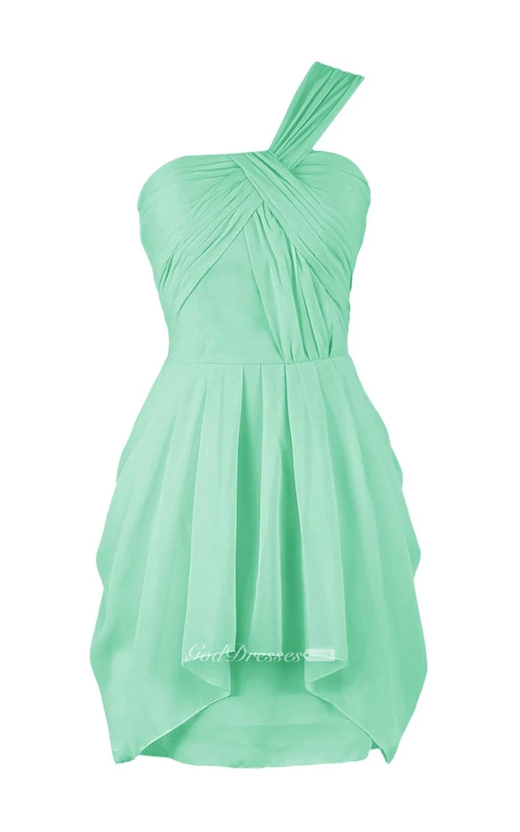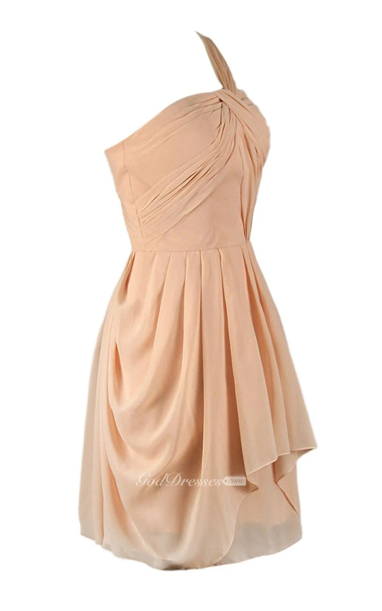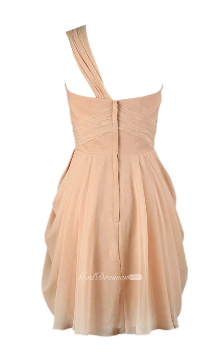 One-shoulder Drapped Short Dress With Zipper Back