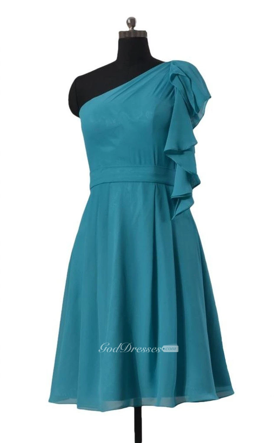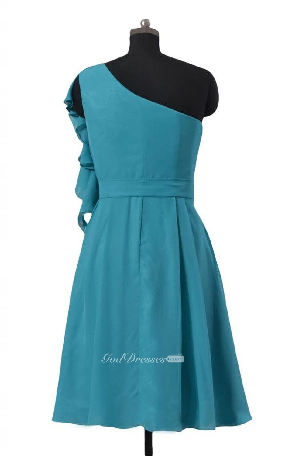 One-shoulder Drapped Sleeve Knee-length Pleated Chiffon Dress
