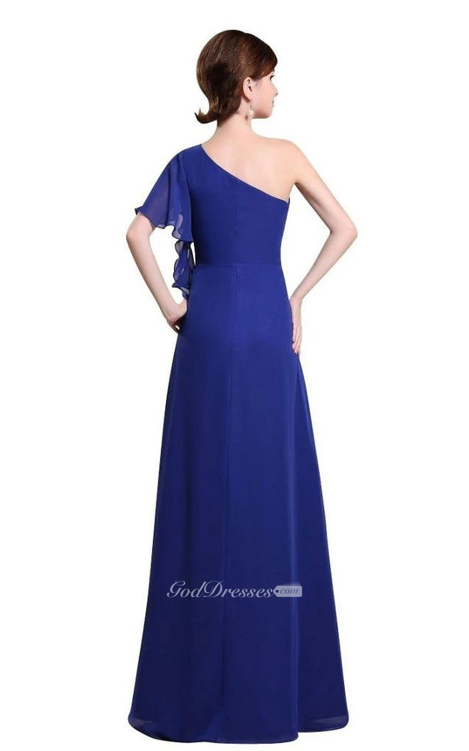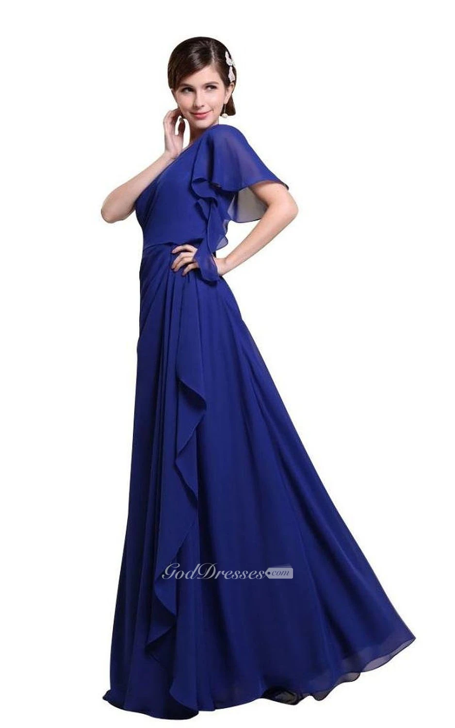 One-shoulder Drapped Sleeve Long Layered Chiffon Dress
