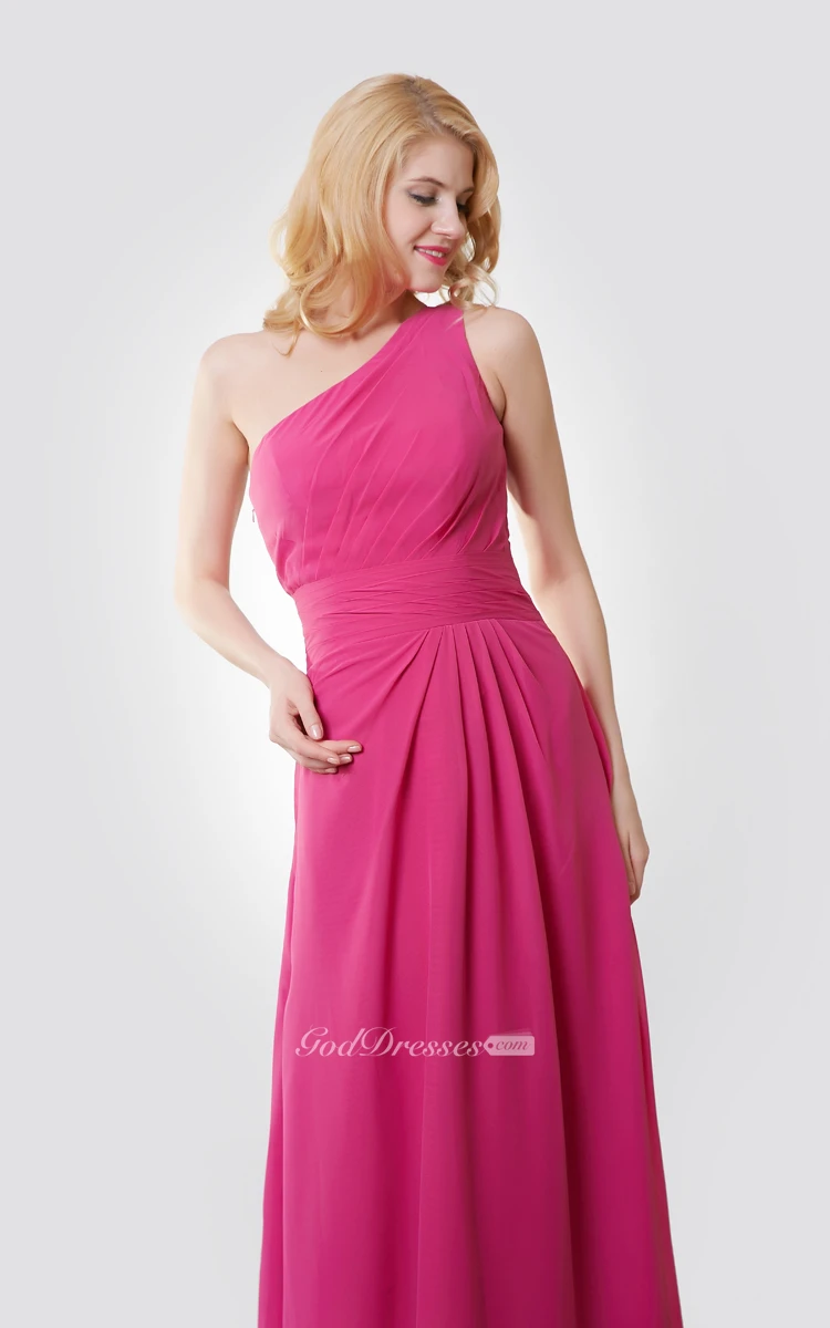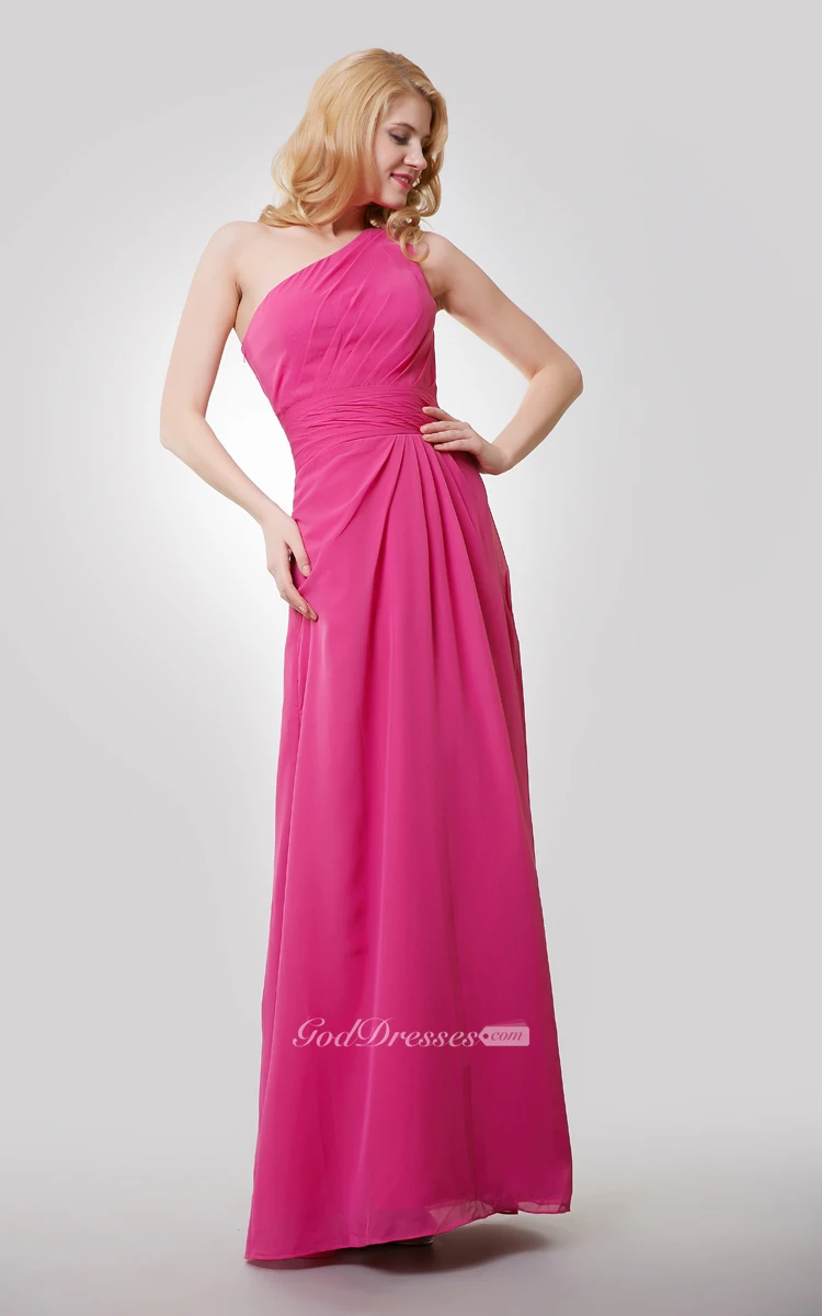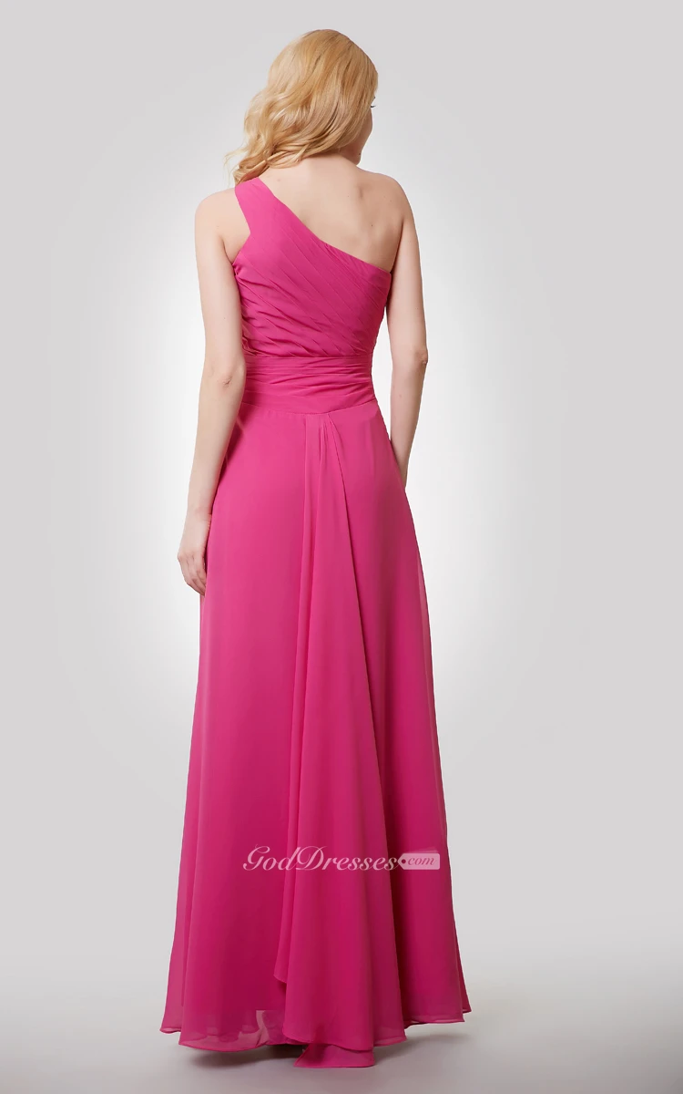 One-Shoulder Floor Length A-Line Chiffon Dress With Ruching