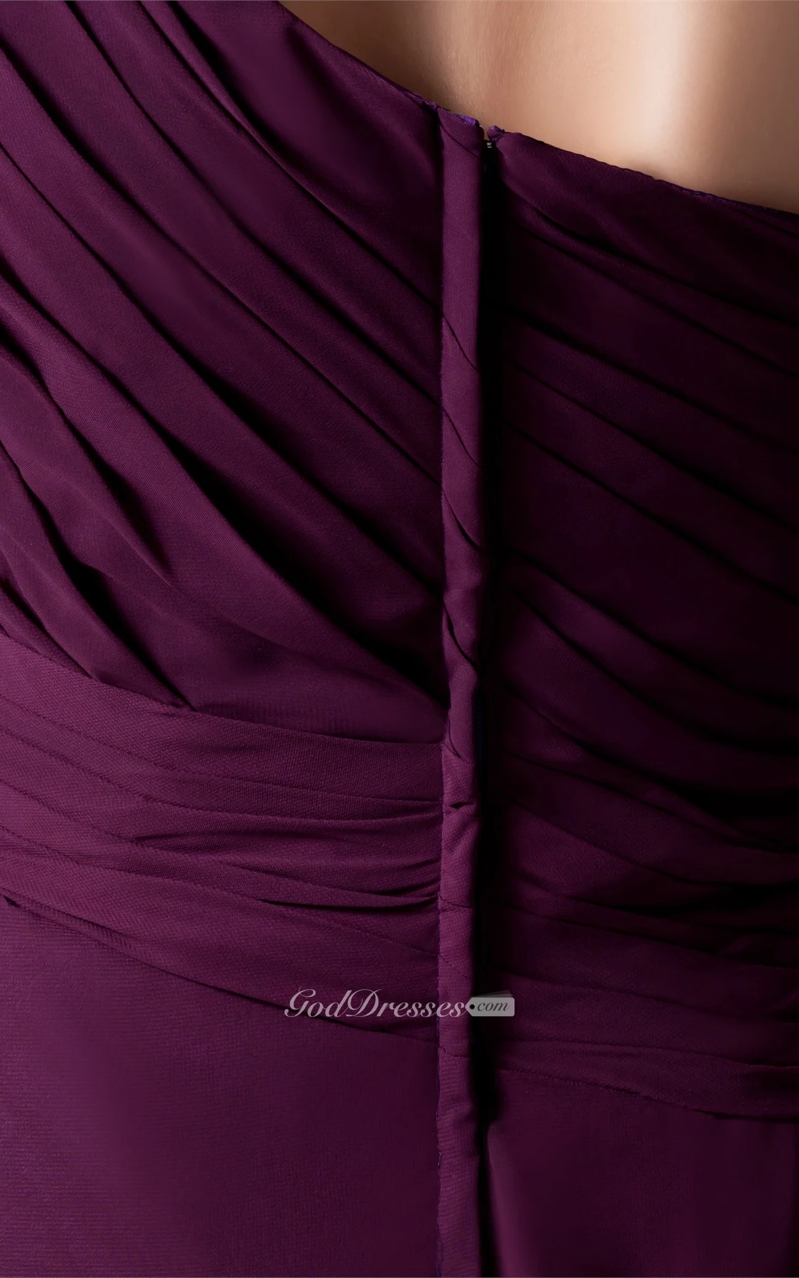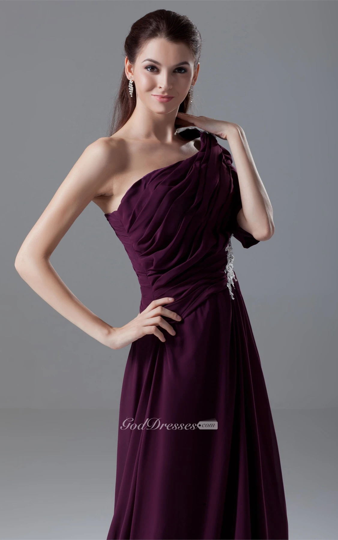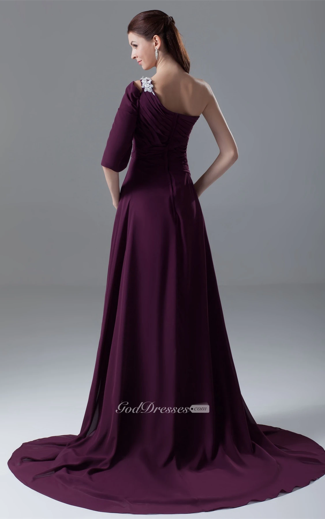One-Shoulder Floor-Length Chiffon Brush Train and Dress With Lace