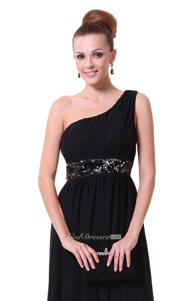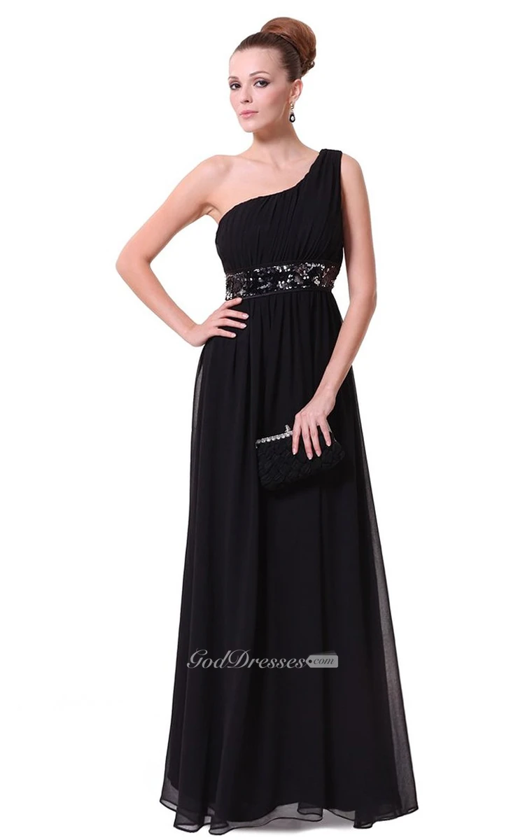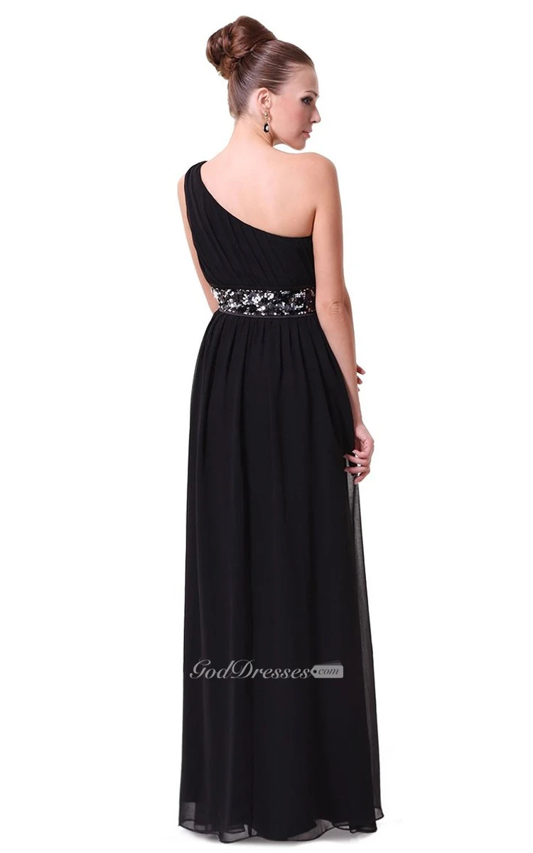 One-shoulder Floor-Length Chiffon Dress With Embroidery