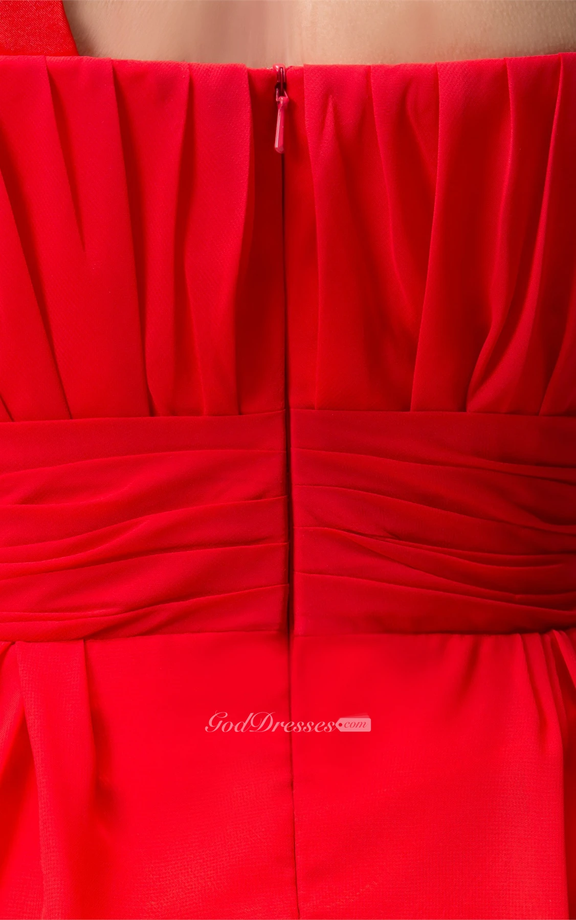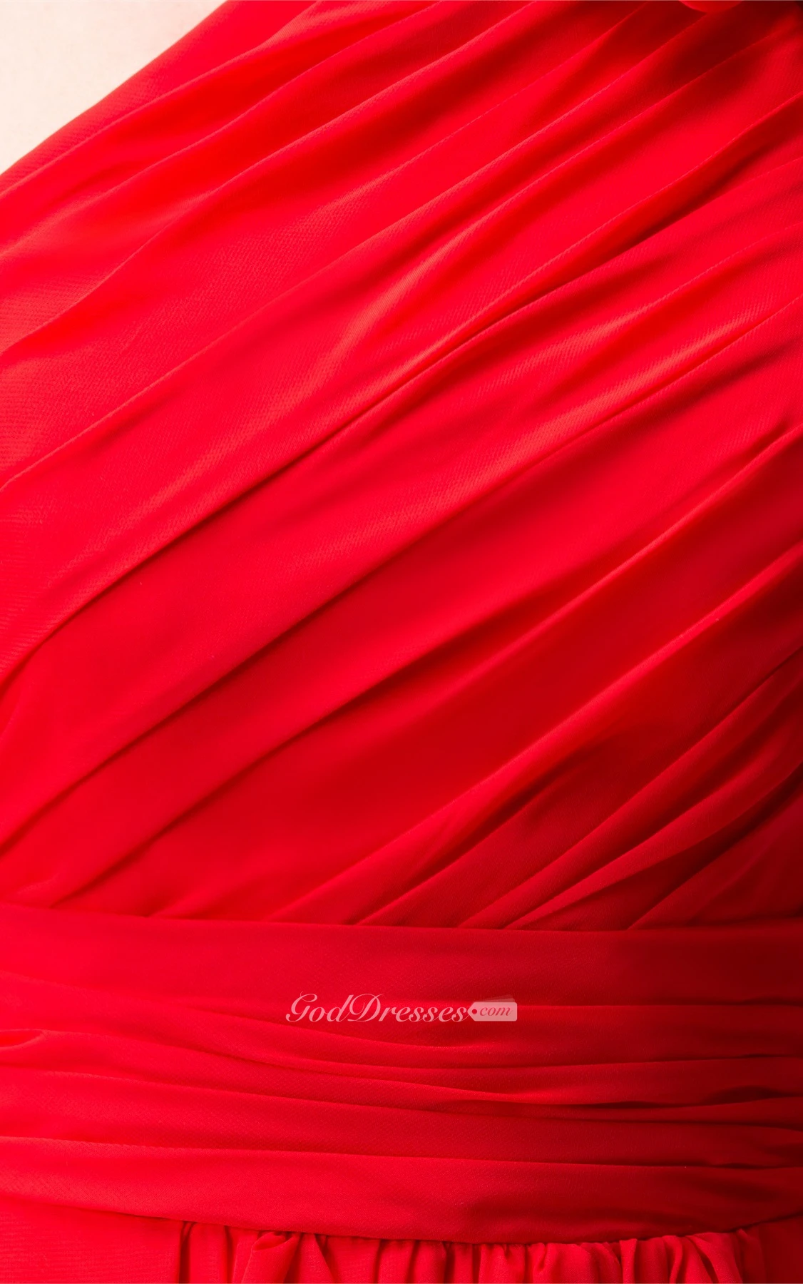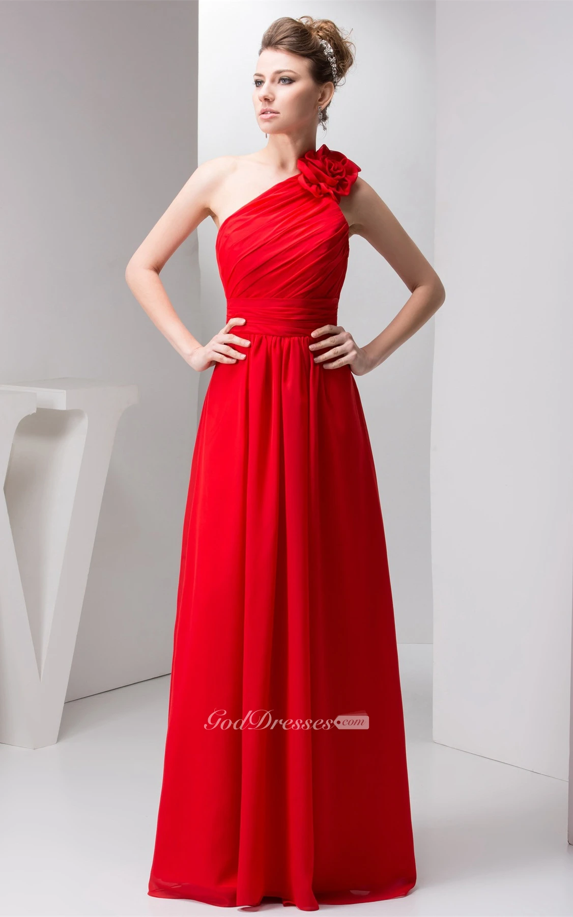 One-Shoulder Floor-Length Chiffon Floral Epaulet and Dress With Ruching