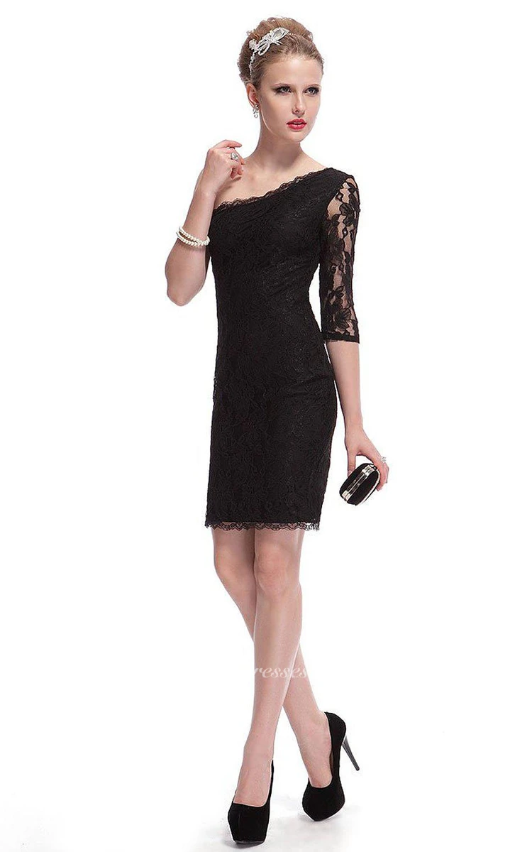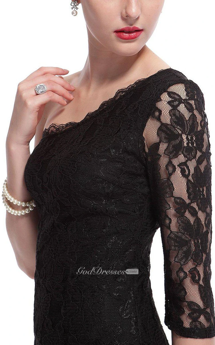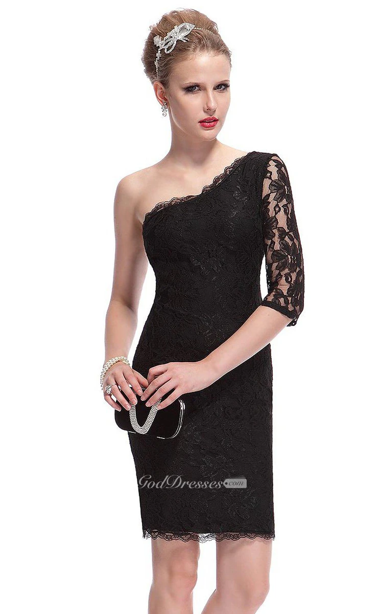 One-shoulder Lace Sheath Dress With Half Sleeve
