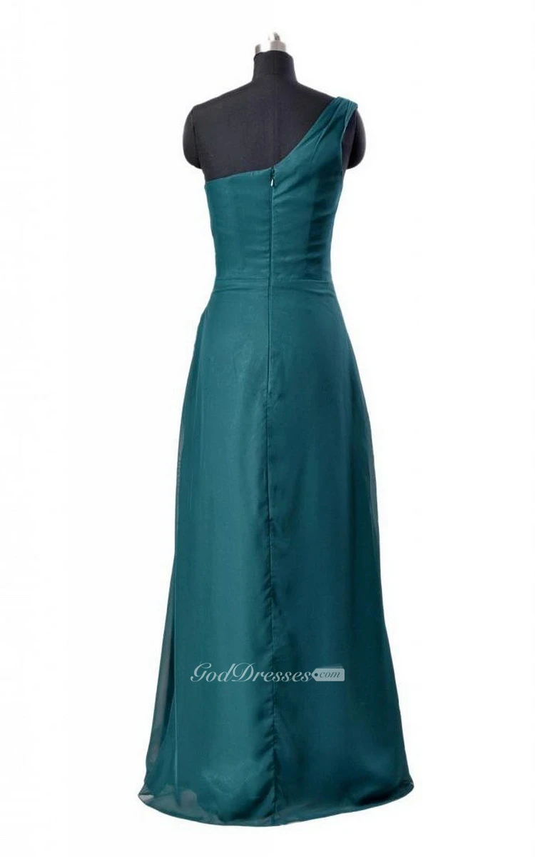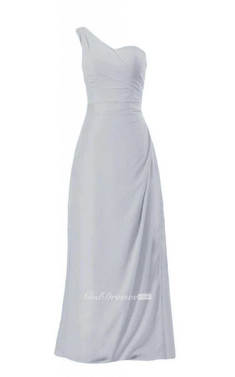 One-shoulder Long Chiffon Dress With Ruched Bodice