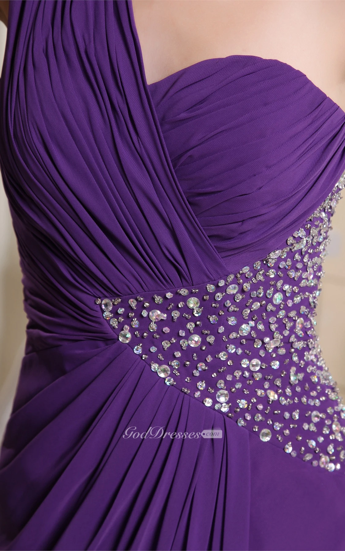 One-Shoulder Long Front-Split Side Beading and Dress With Ruching