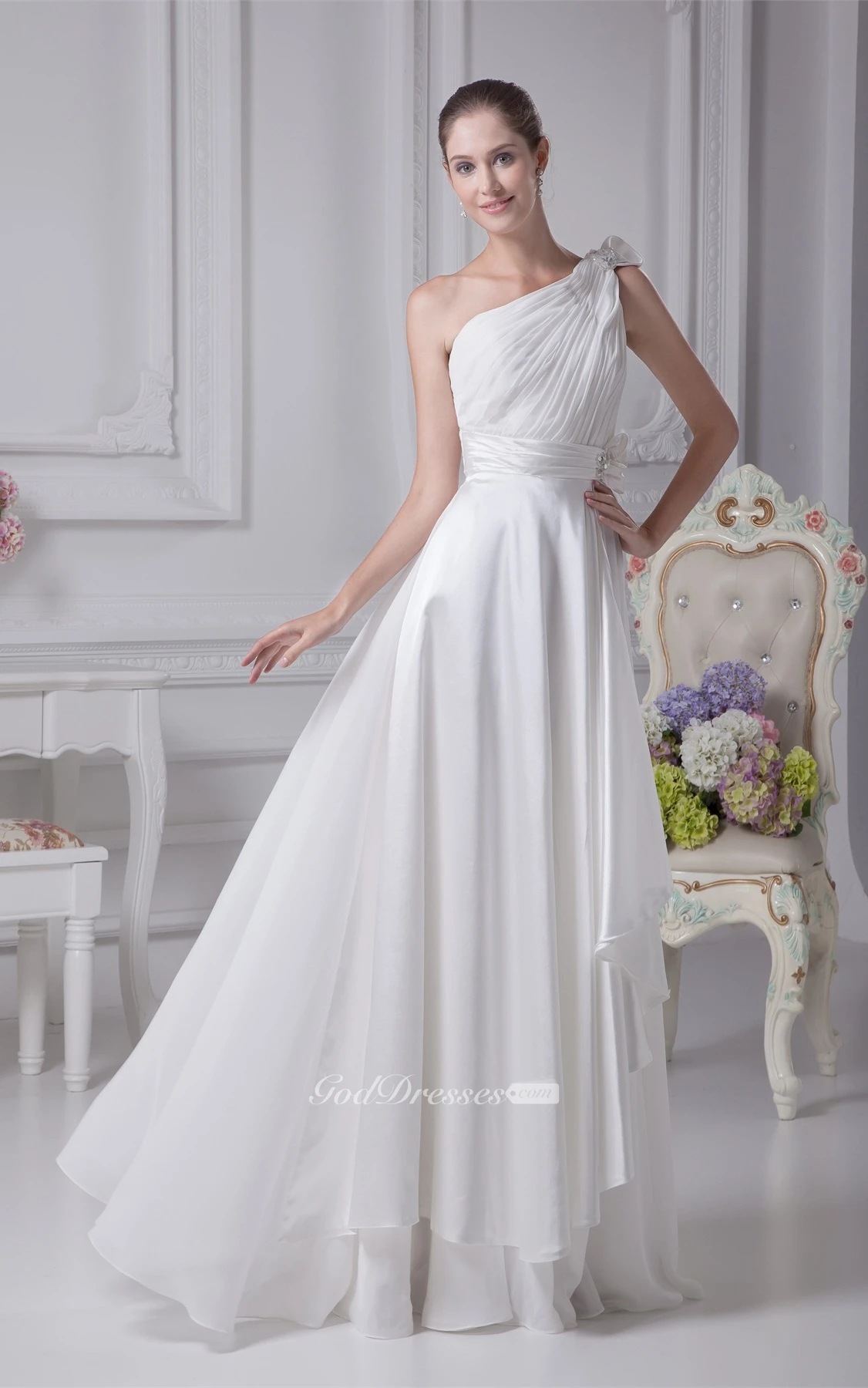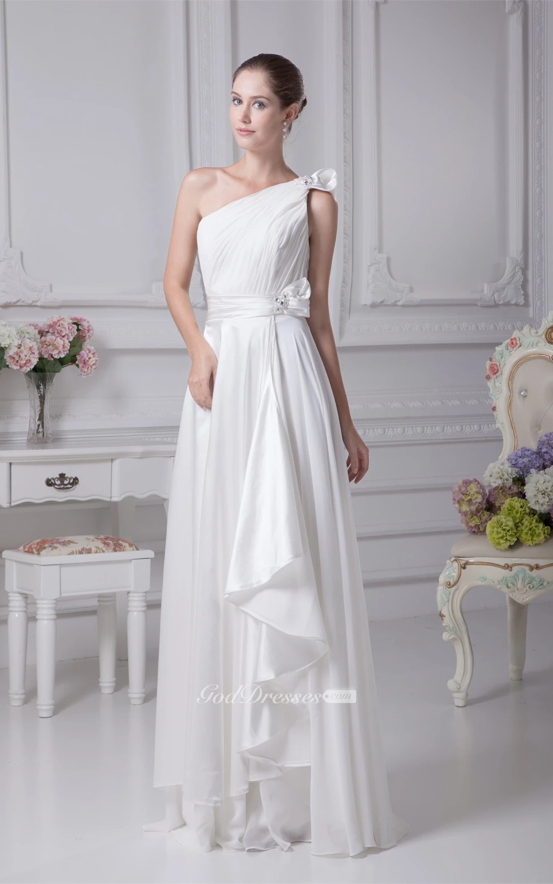 One-Shoulder Maxi Draped Ruched Top and Dress With Broach
