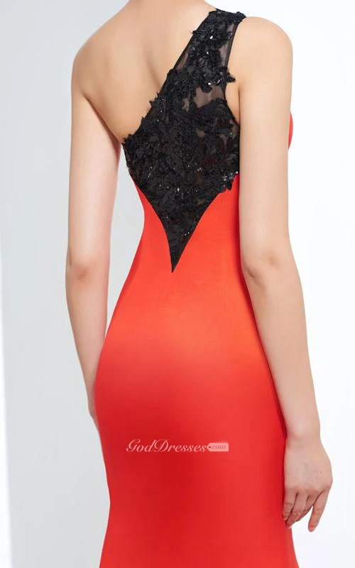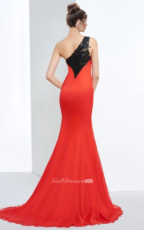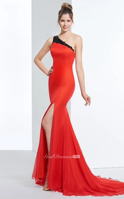 One-Shoulder Mermaid Appliques Sequins Split-Front Prom Dress