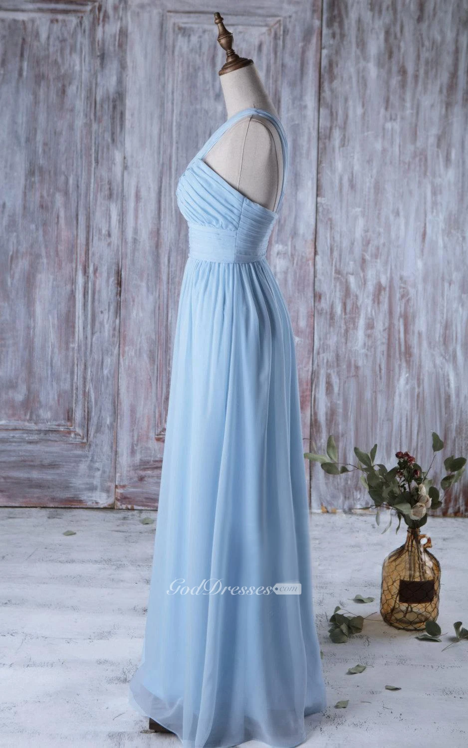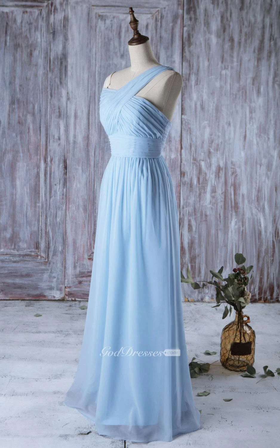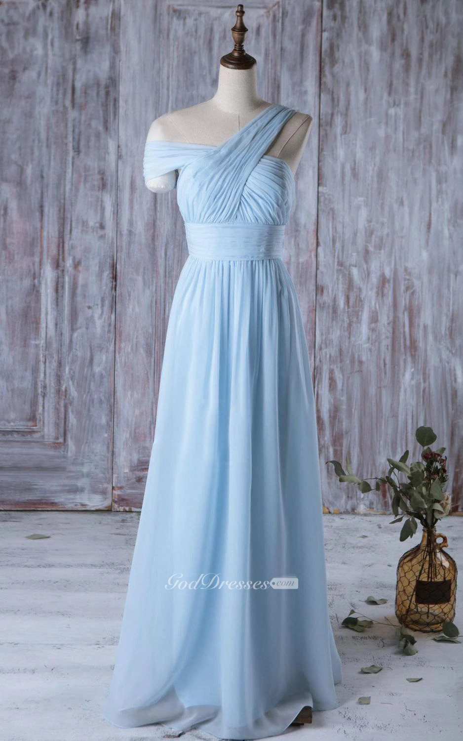 One Shoulder Off Shoulder Empire A-line Chiffon Long Dress