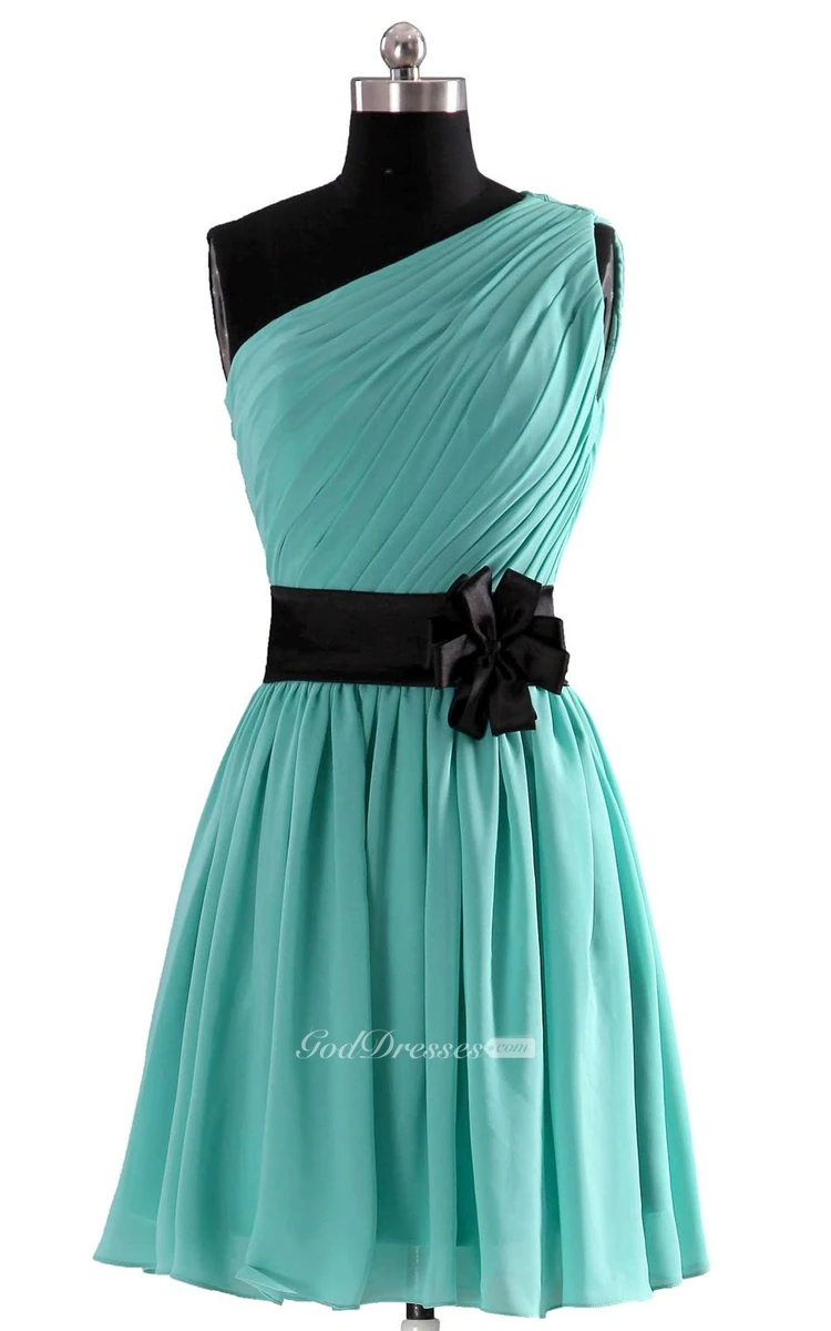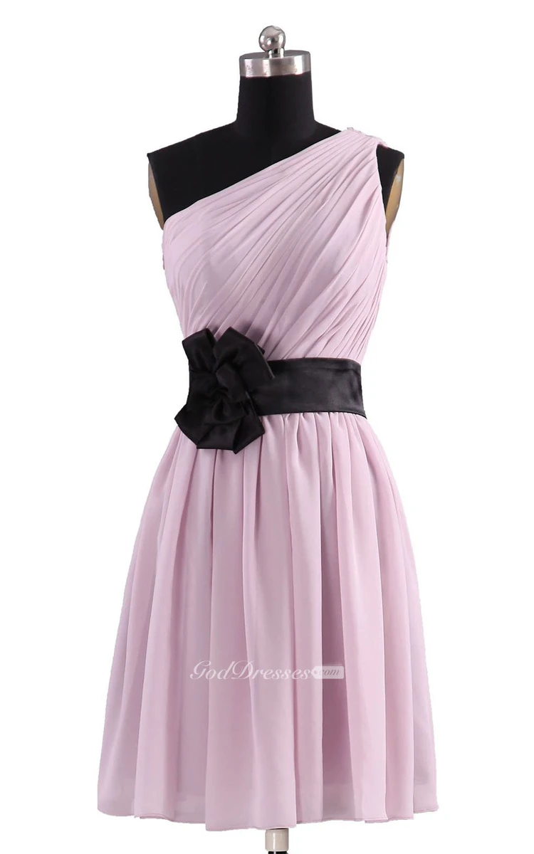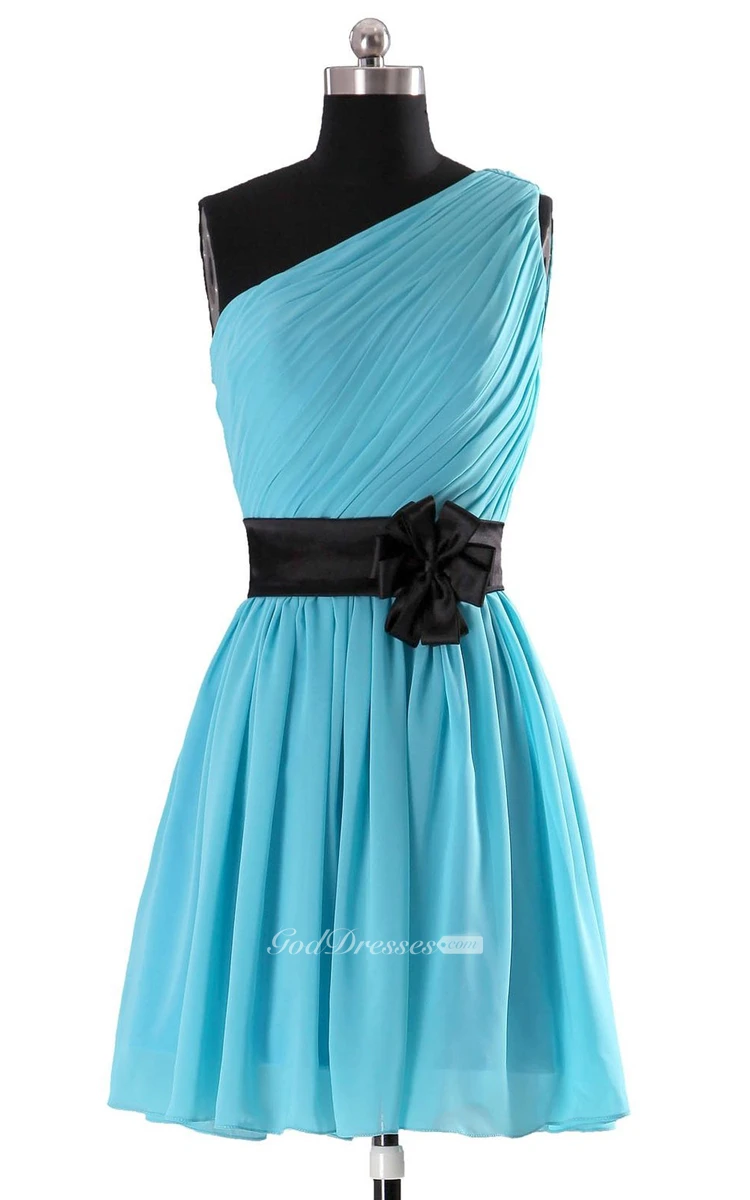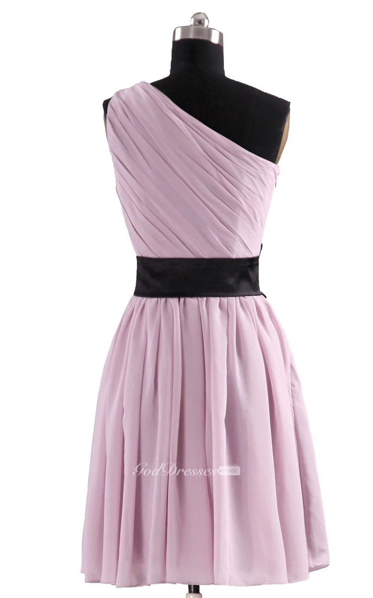 One-shoulder Pleated Bridal Dres With Satin Belt