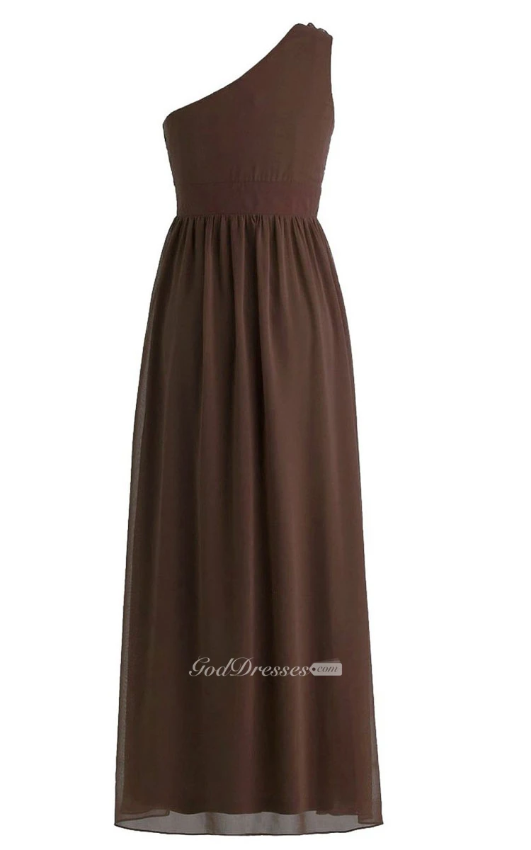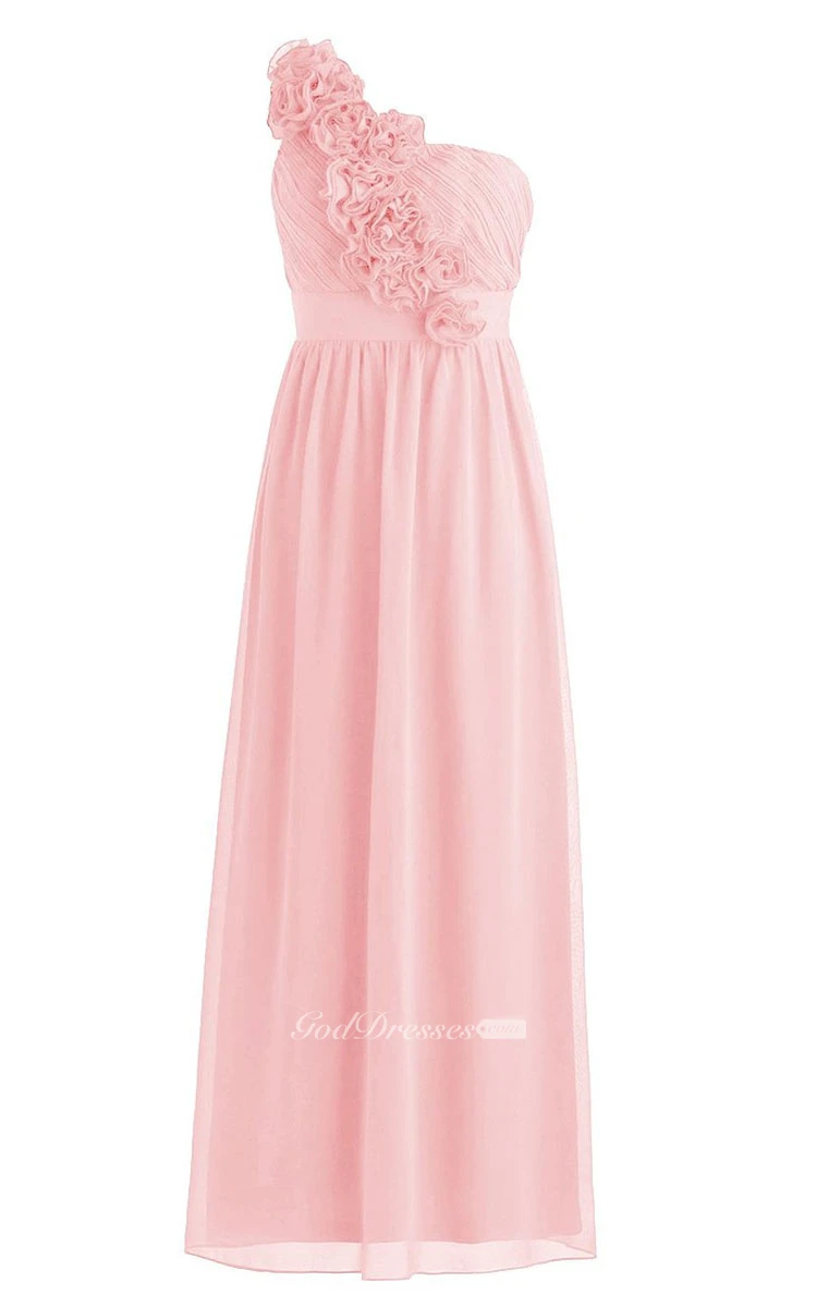 One-shoulder Pleated Chiffon A-line Dress With Flowers