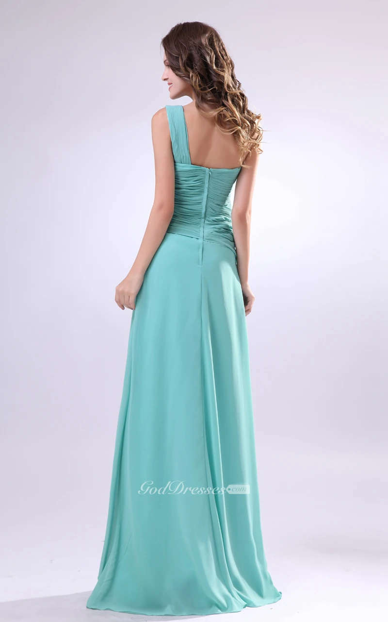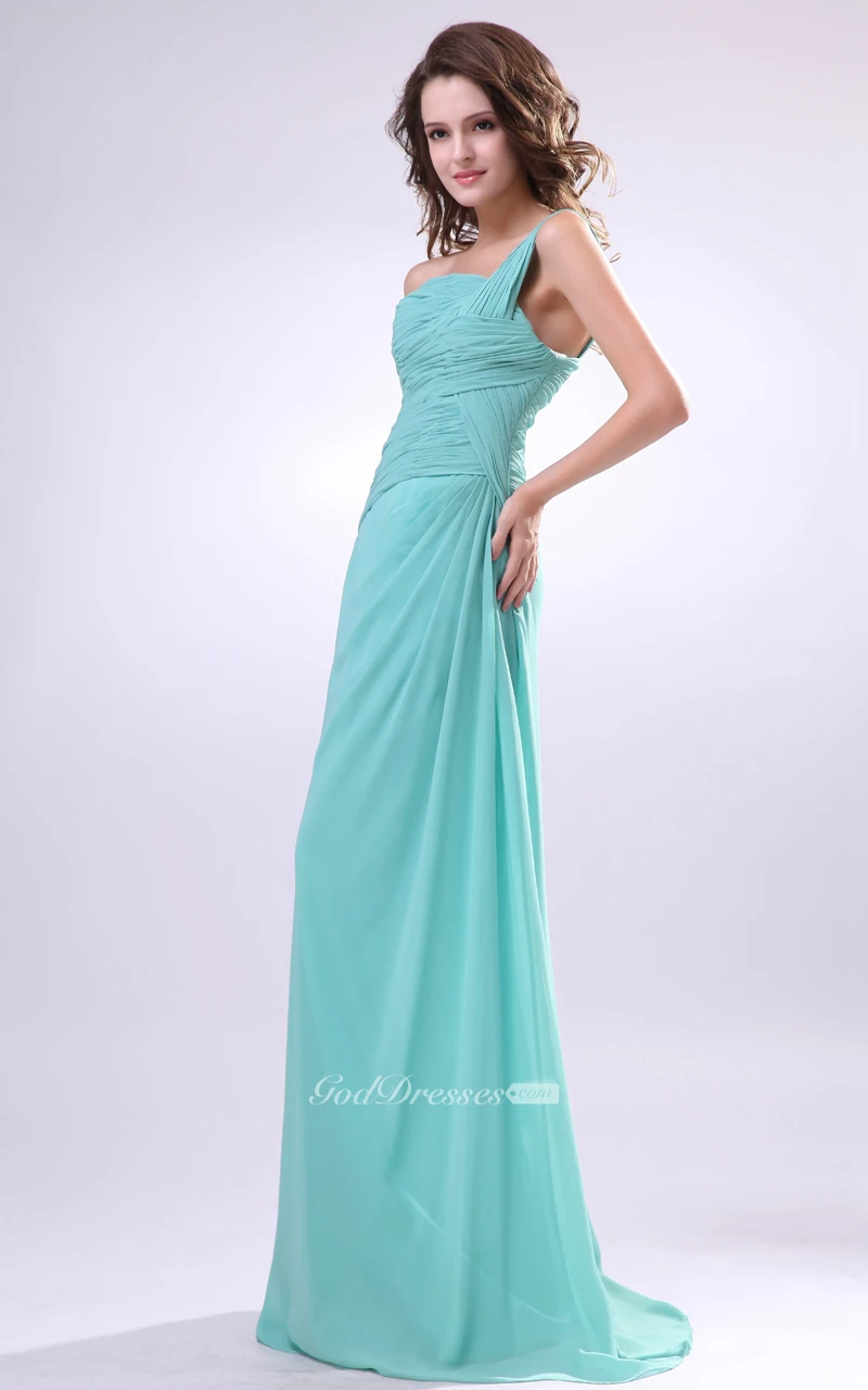 One-Shoulder Pleating Chiffon Dress With Side-Draping