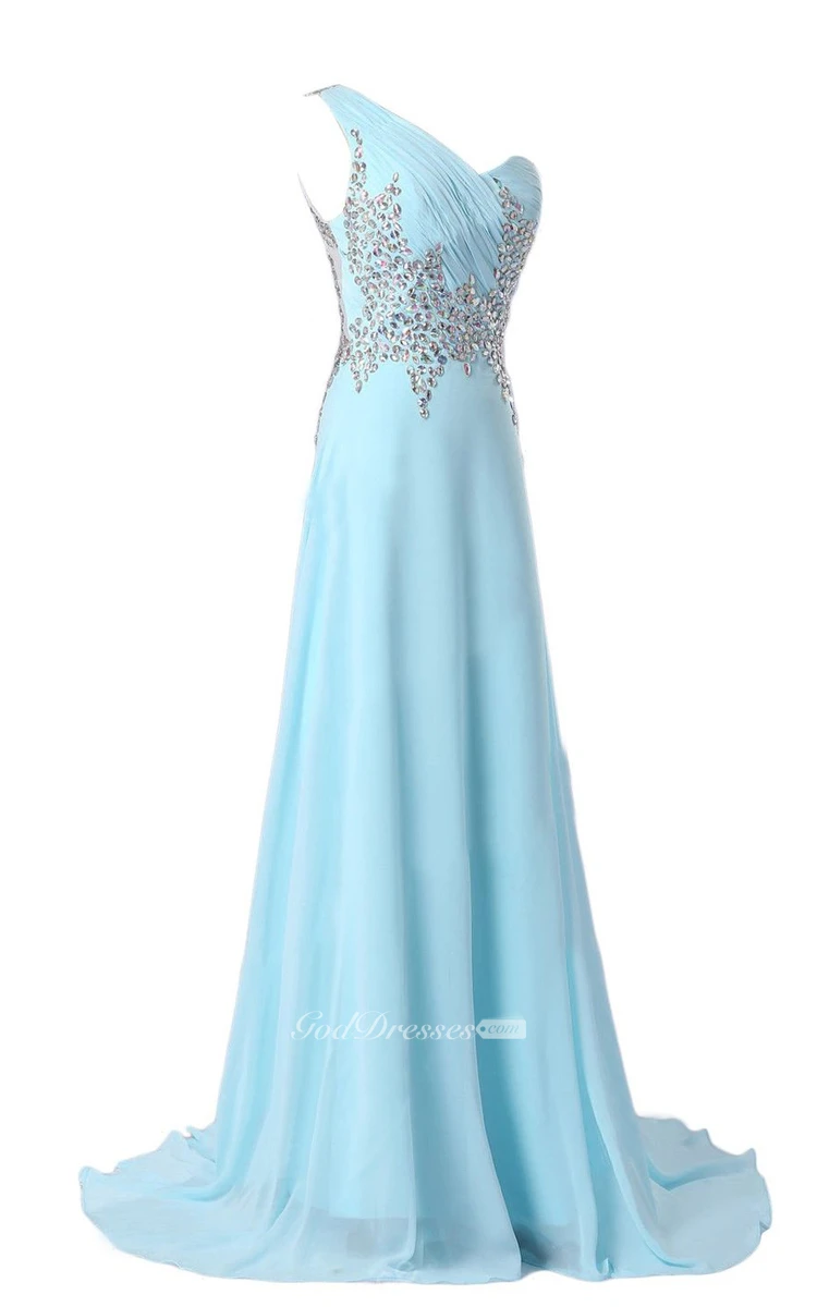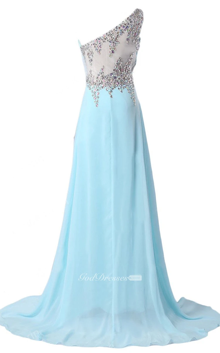 One-shoulder Rhinestoned A-line Gown With Illusion Back