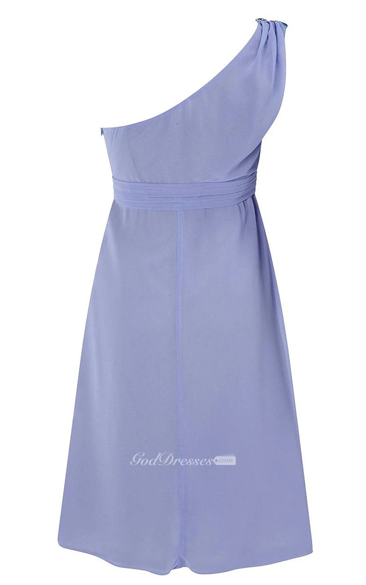 One-shoulder Rhinestoned A-line Short Dress With Ruched Band