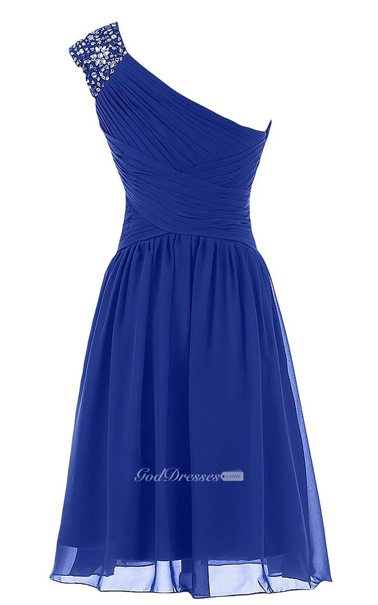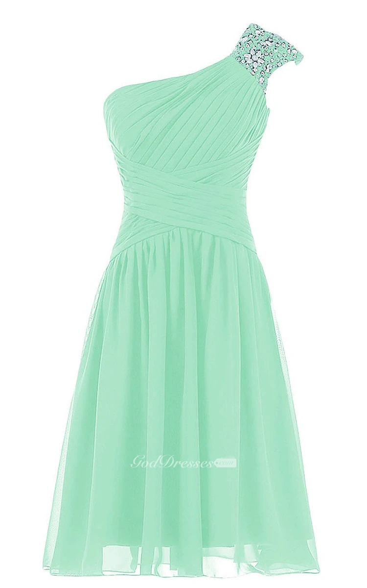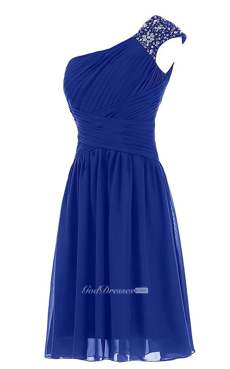 One-shoulder Rhinestoned Pleated A-line Gown With Criss-cross