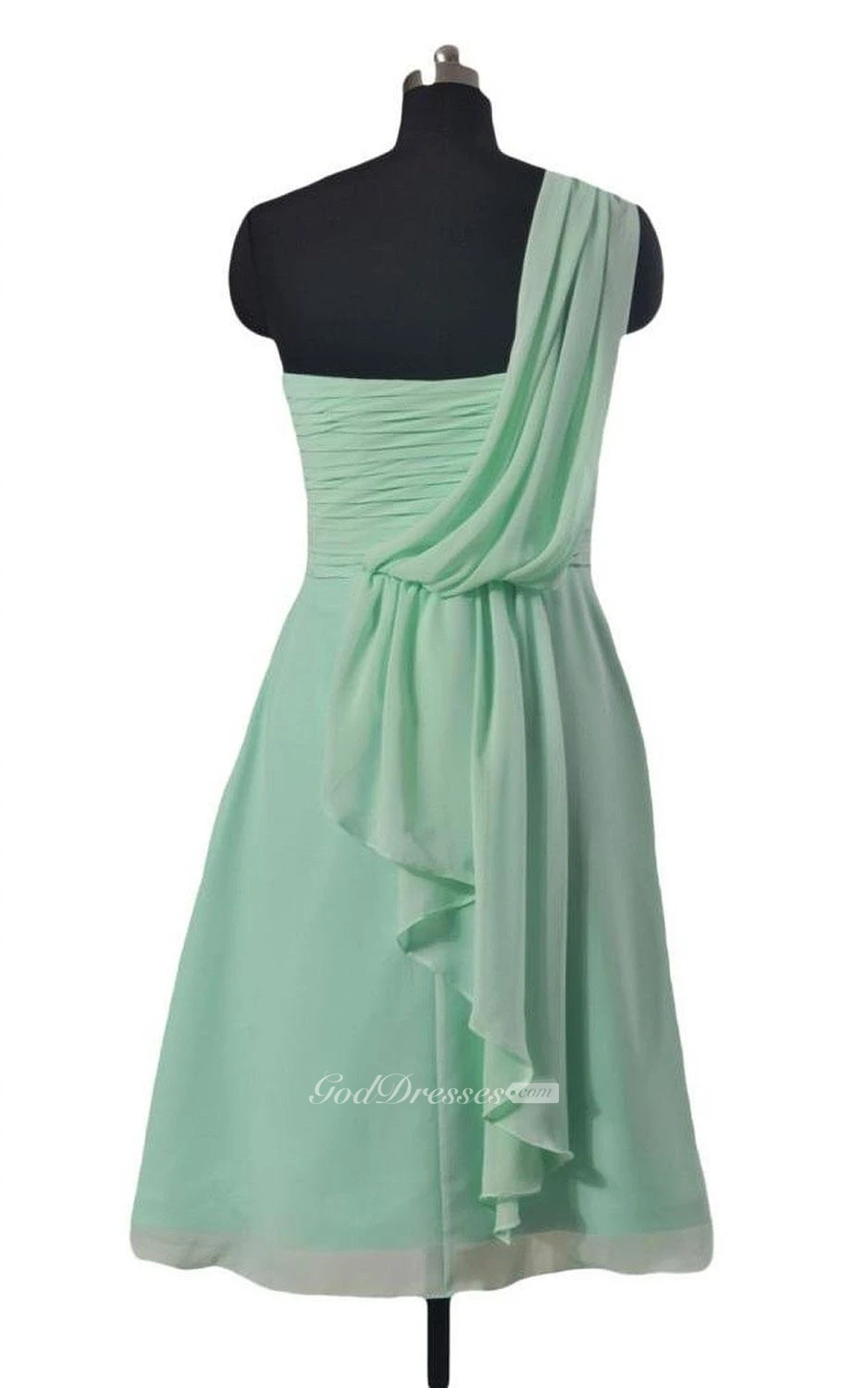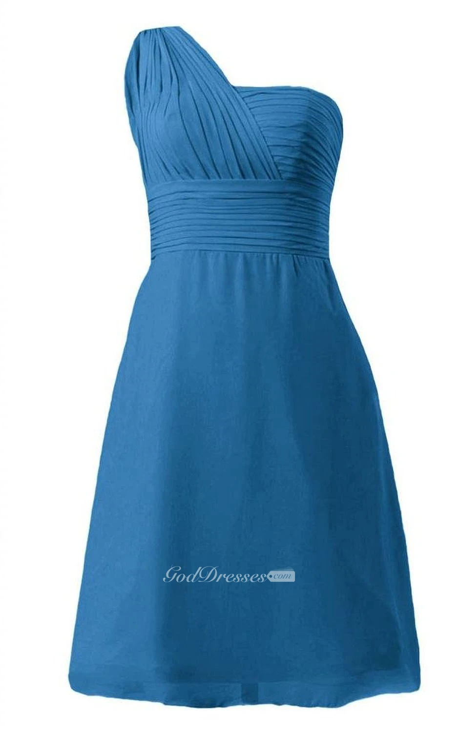 One-shoulder Ruched Bodice Knee-length Chiffon Dress