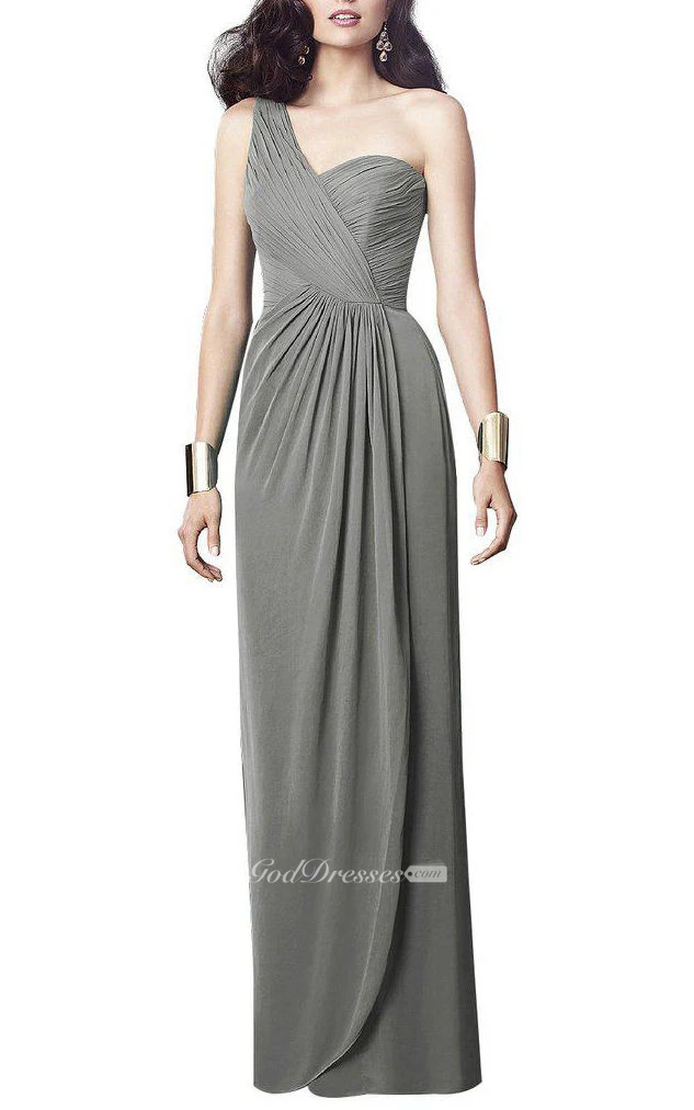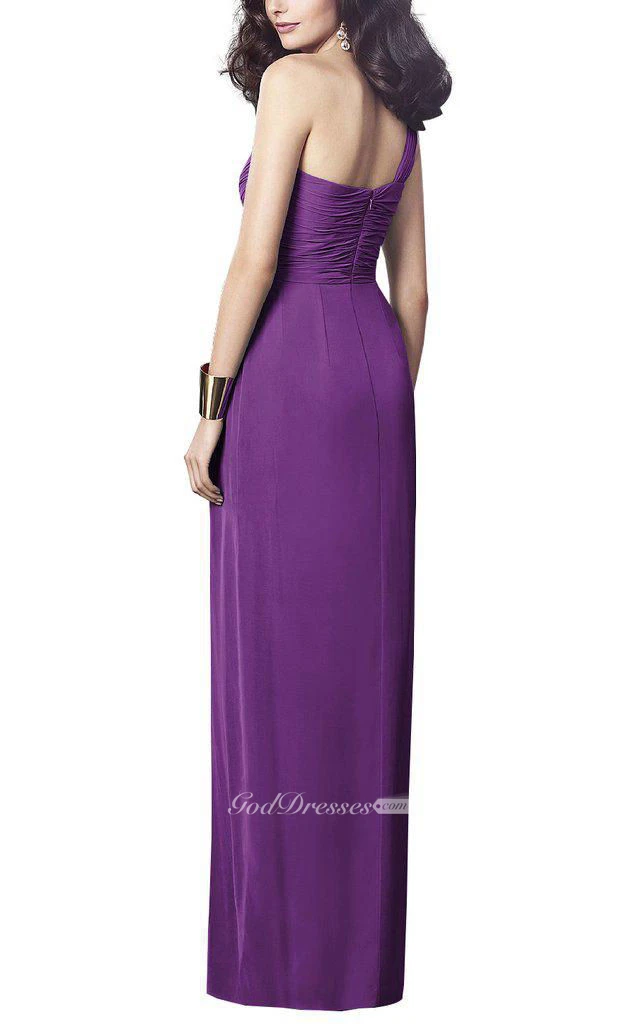 One Shoulder Ruched Bridesmaid Dress with Front Split