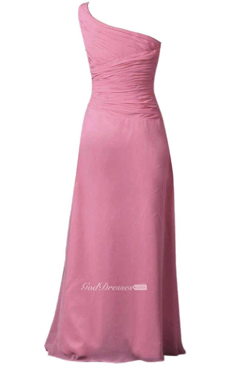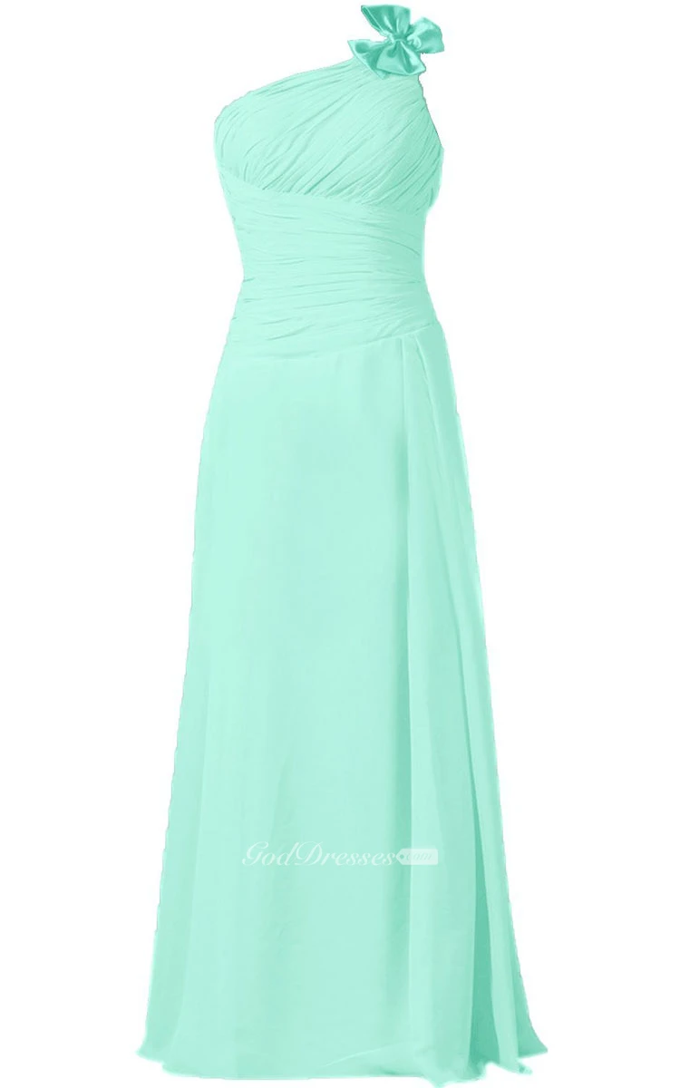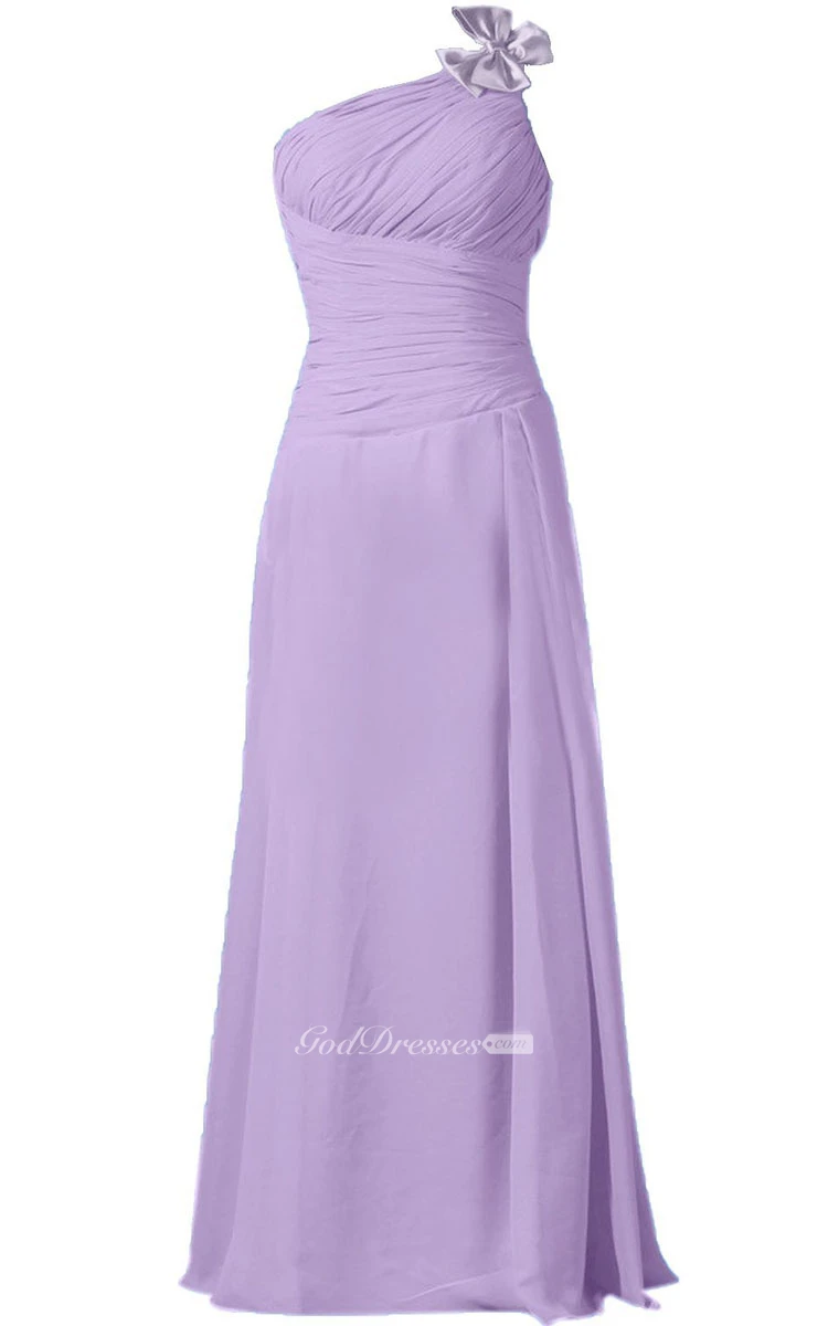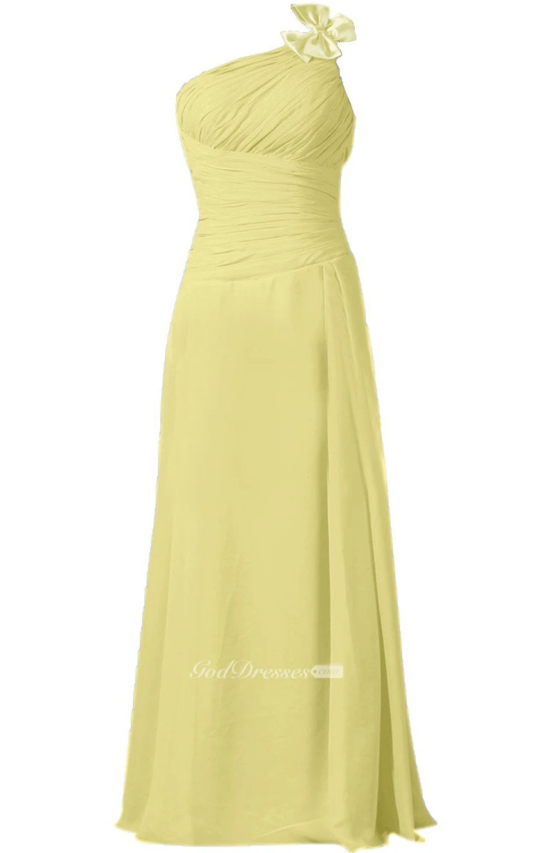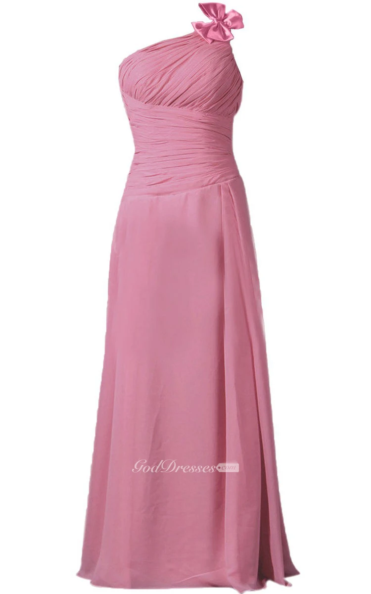 One-shoulder Ruched Chiffon A-line Gown With Bow