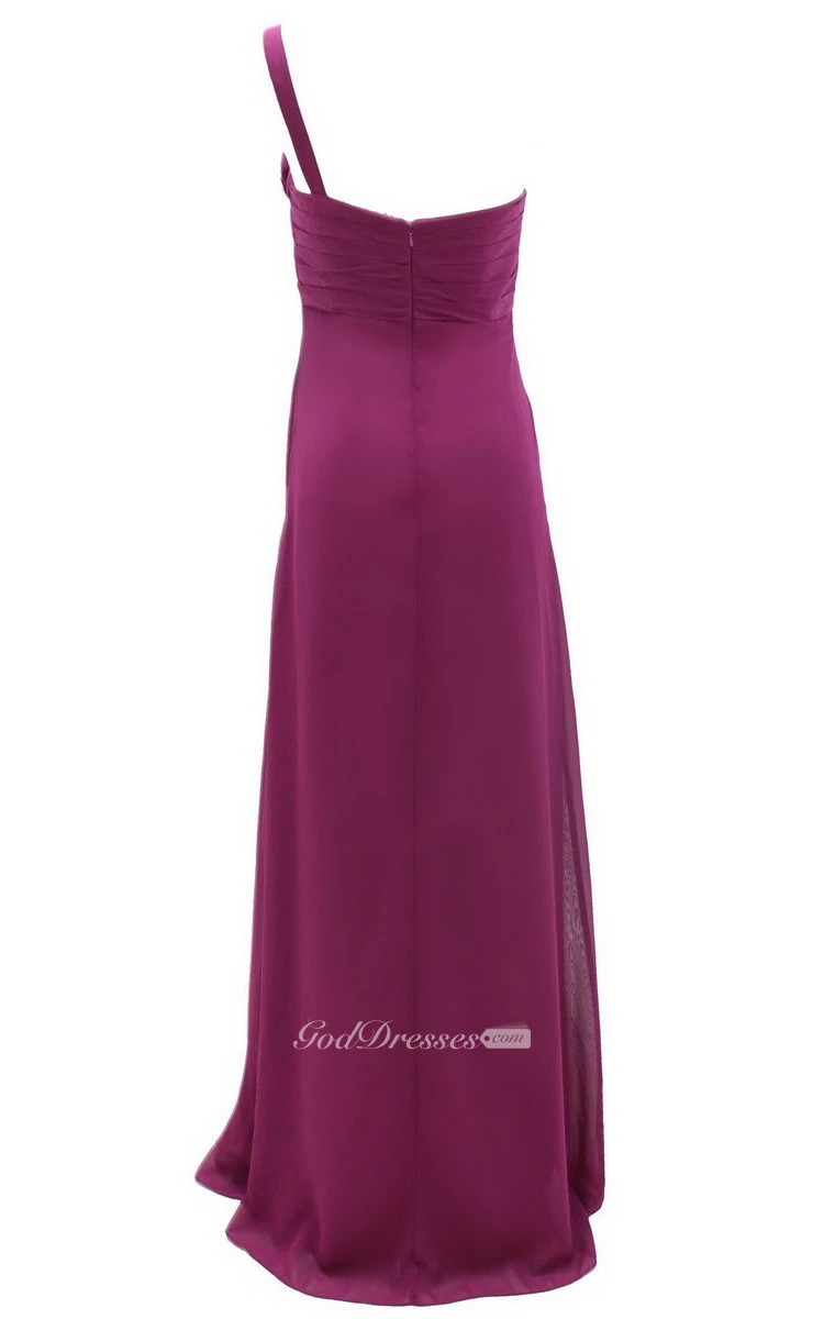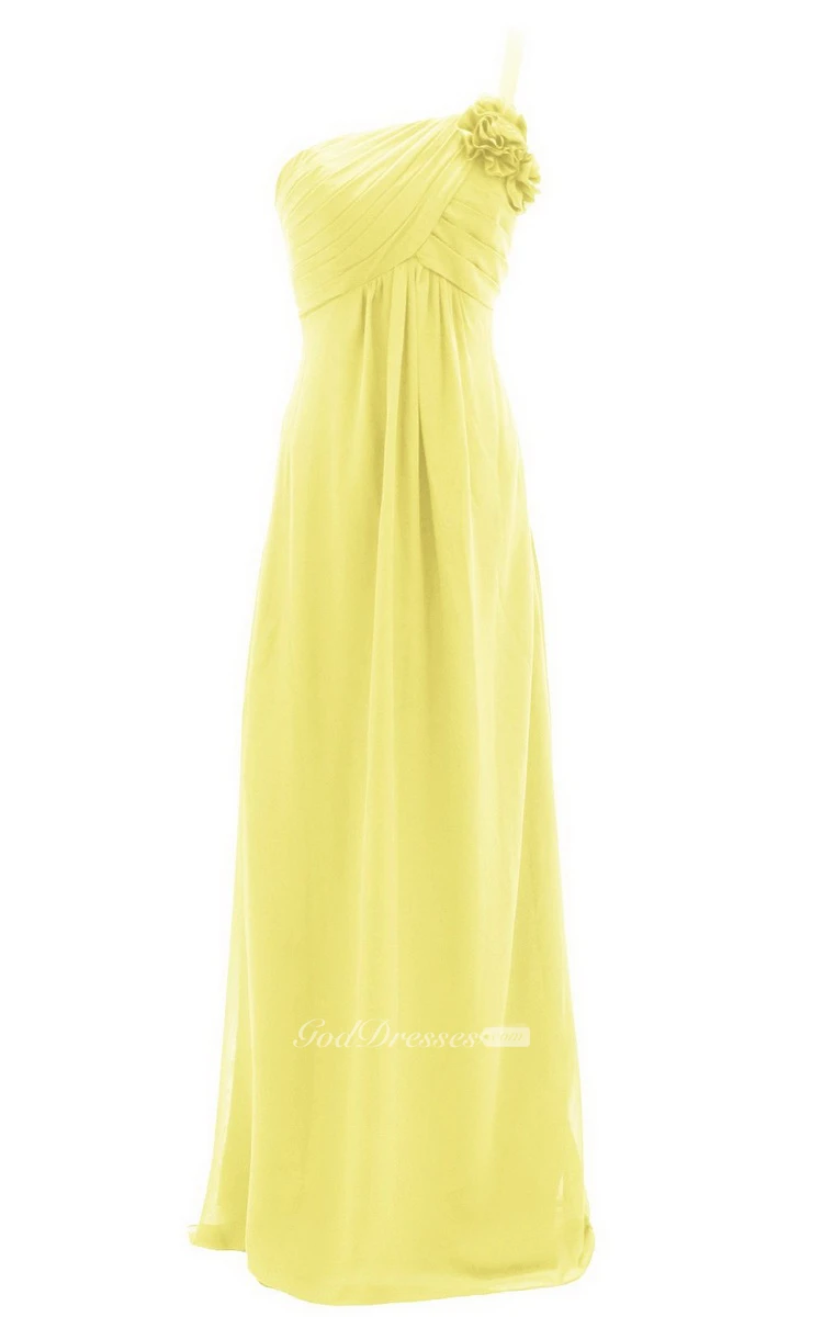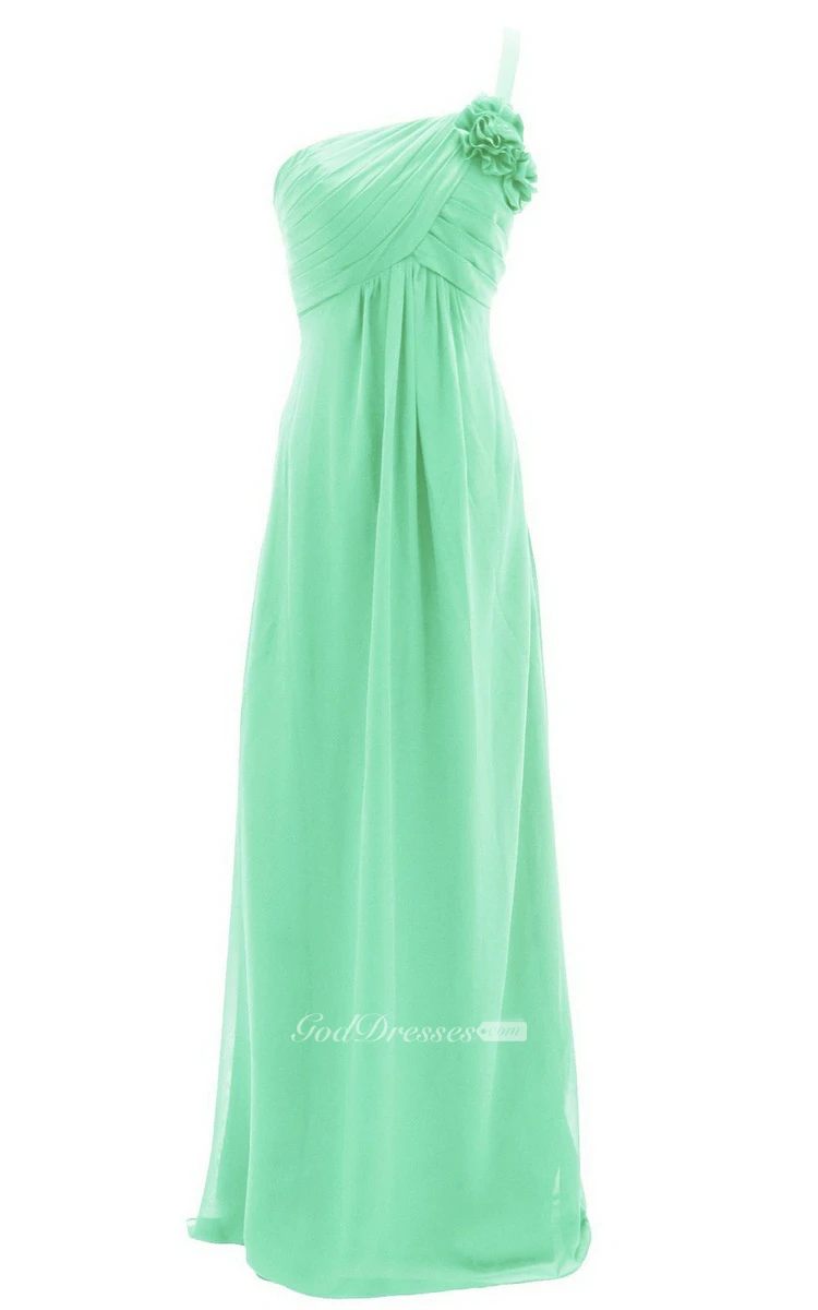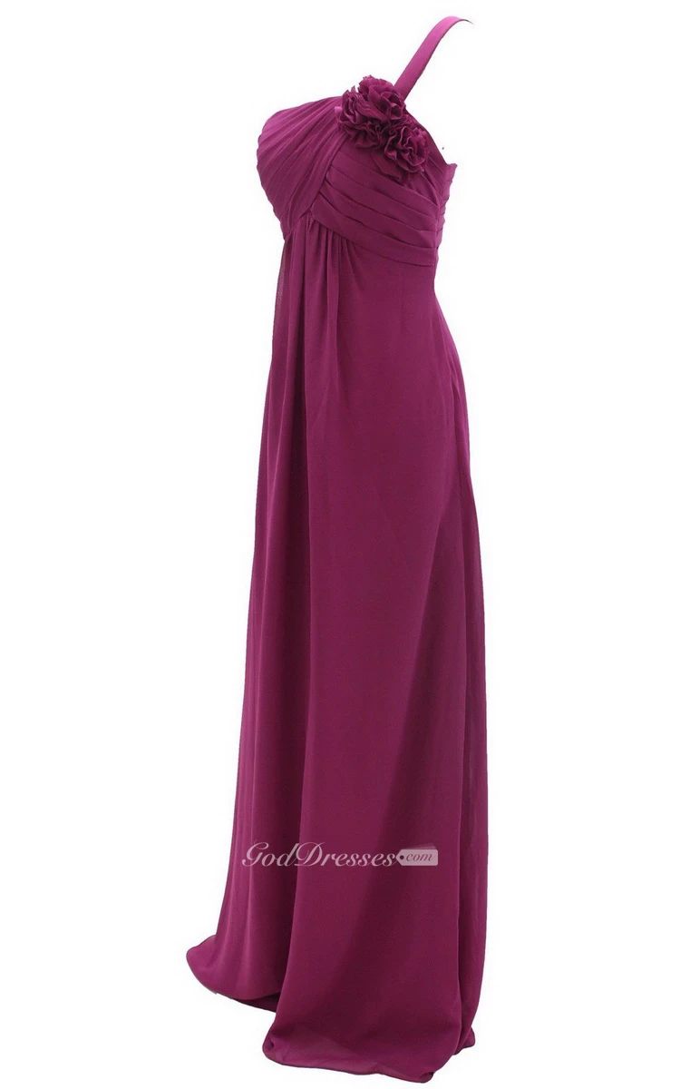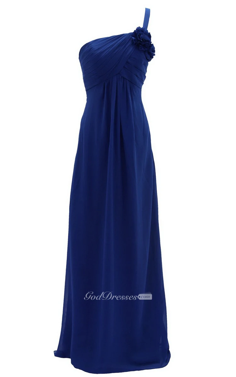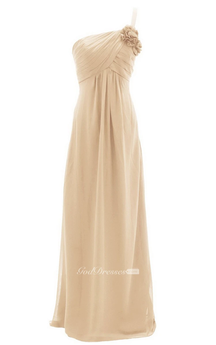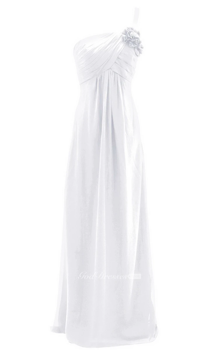 One-shoulder Ruched Empire Gown With Flowers