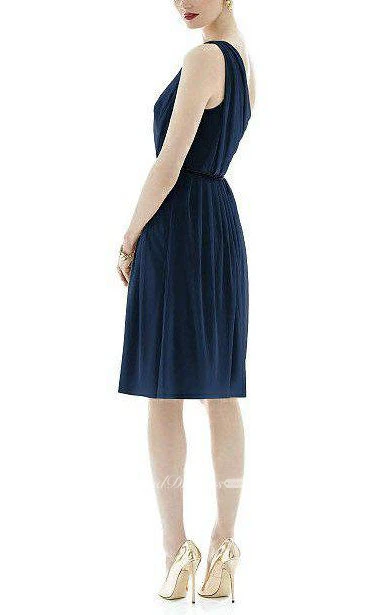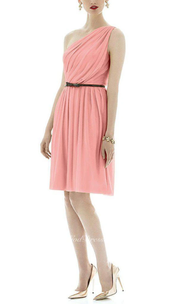 One Shoulder Ruched Short Chiffon Dress with Belt