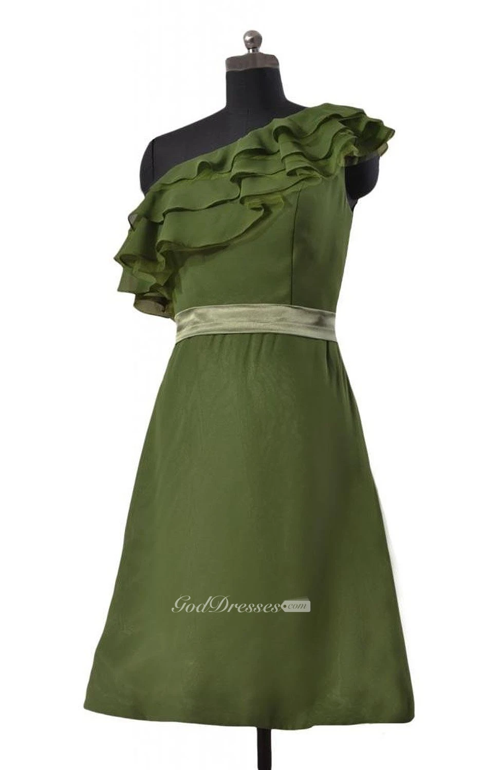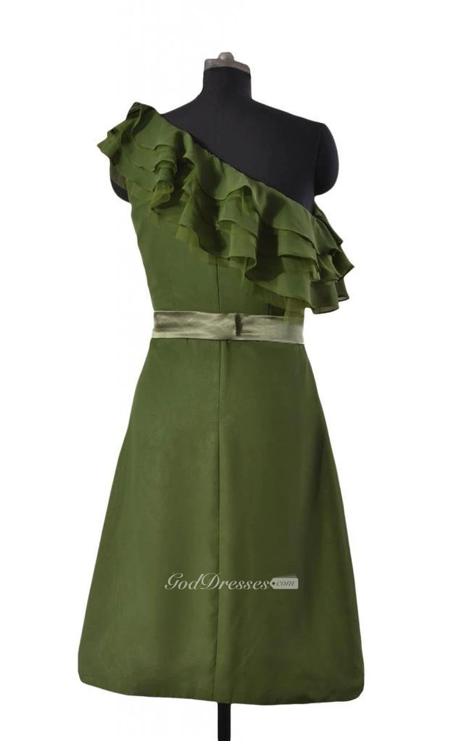 One-shoulder Ruffled Bodice Knee-length Chiffon Dress