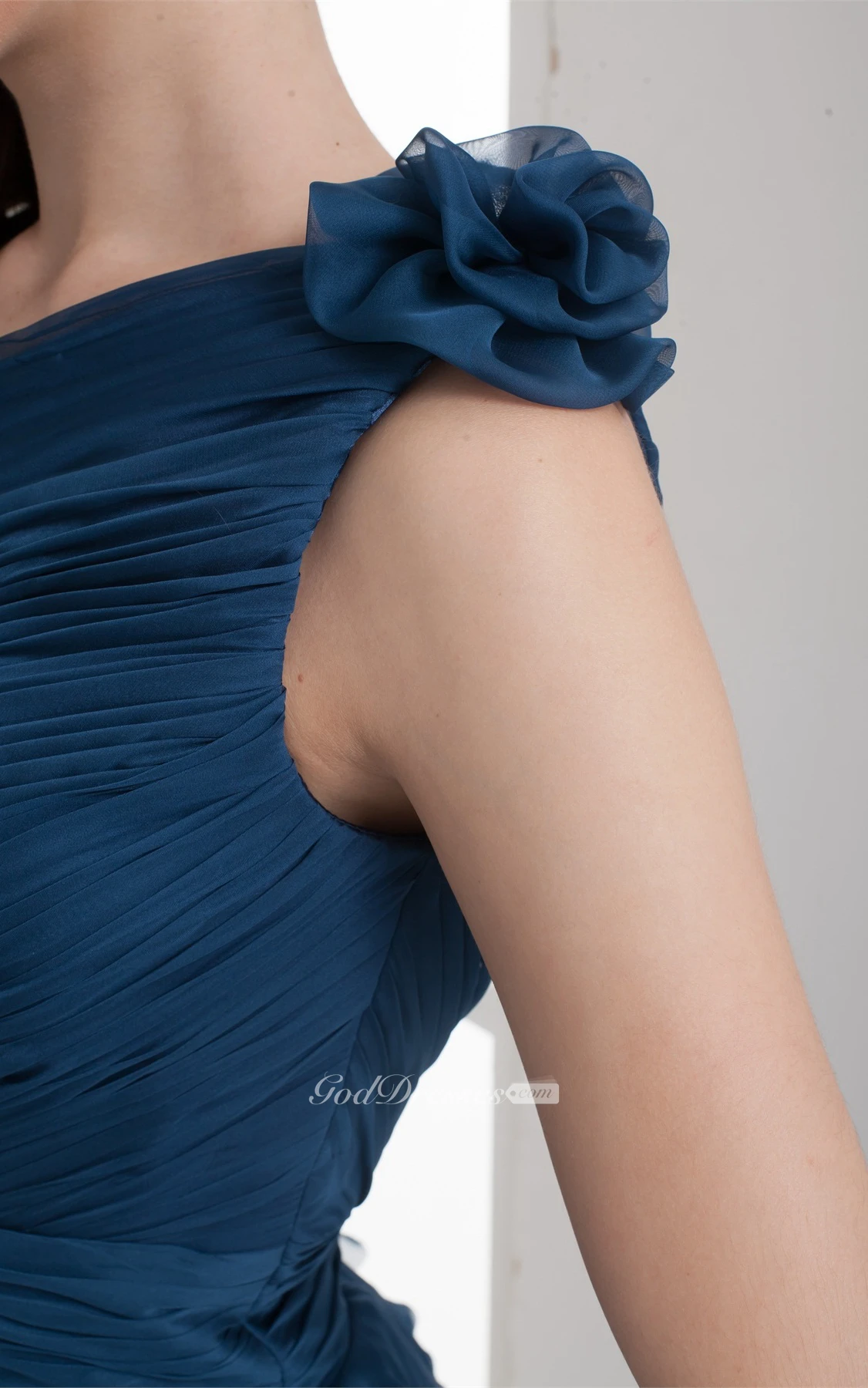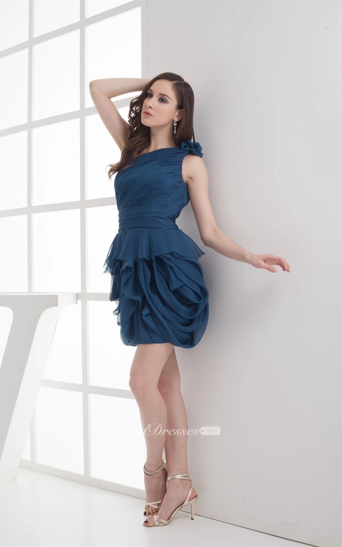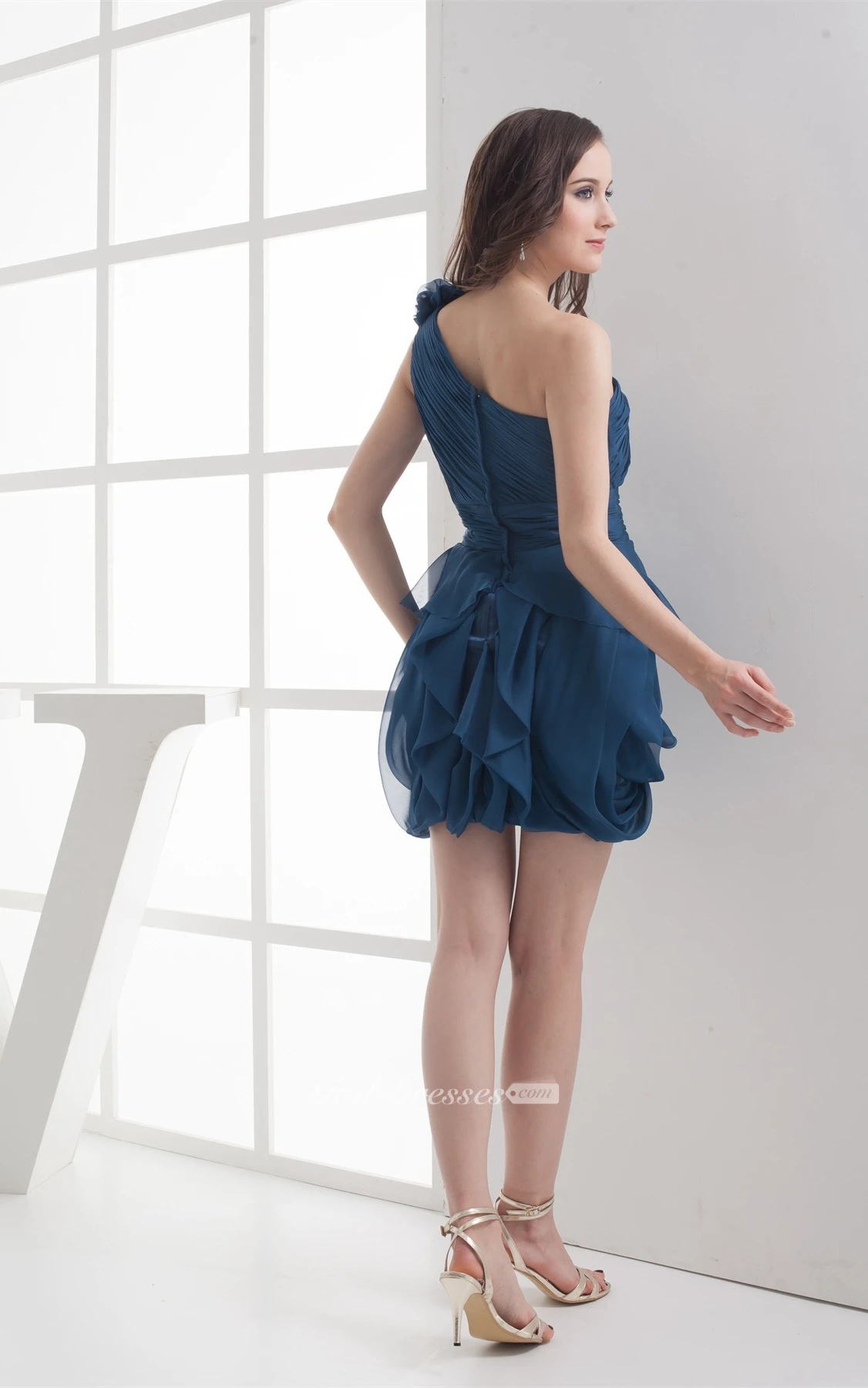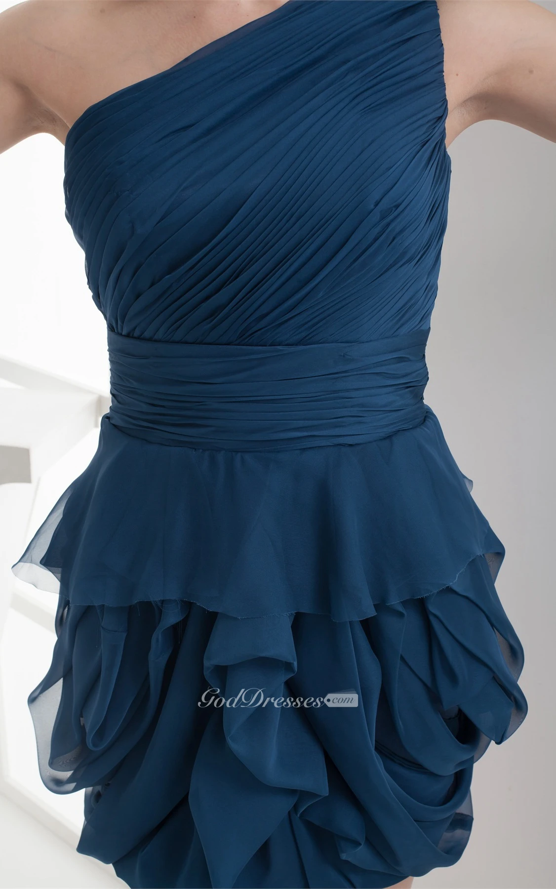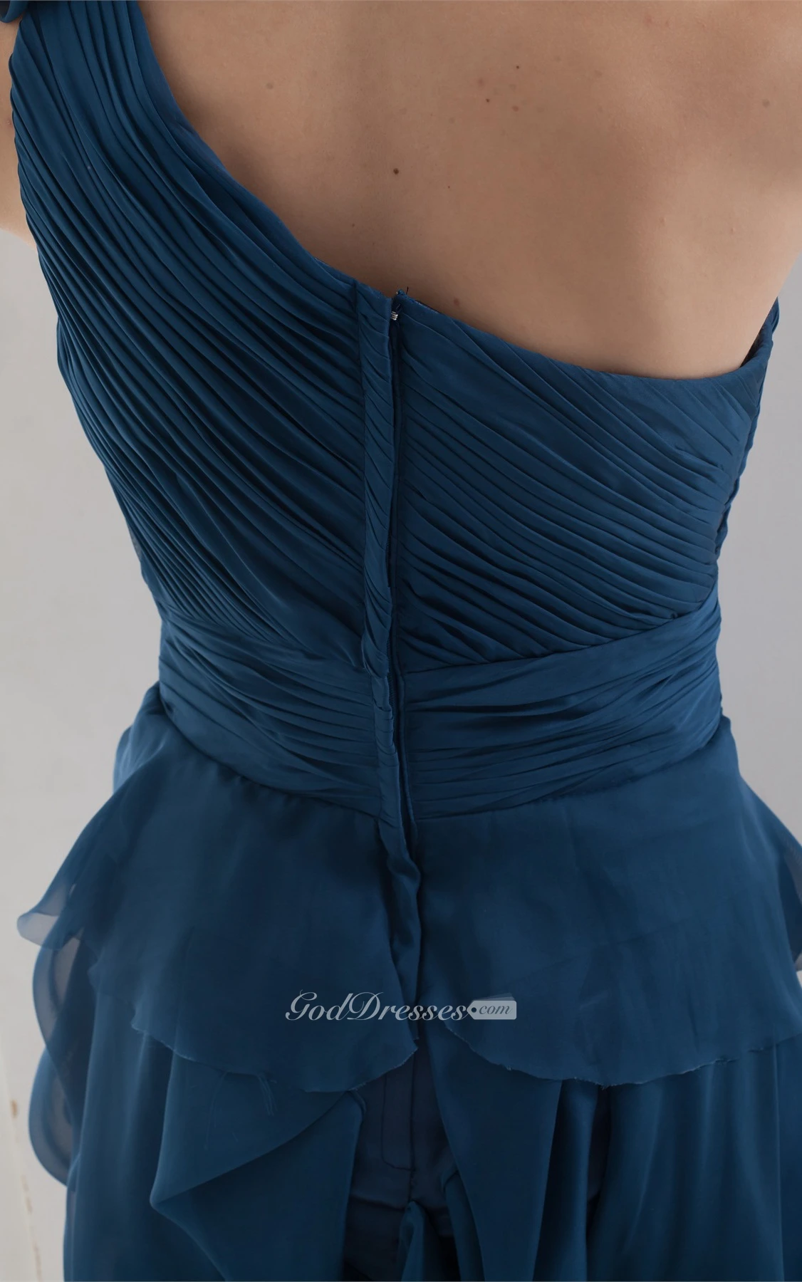One-Shoulder Ruffled Short Chiffon Dress With Peplum