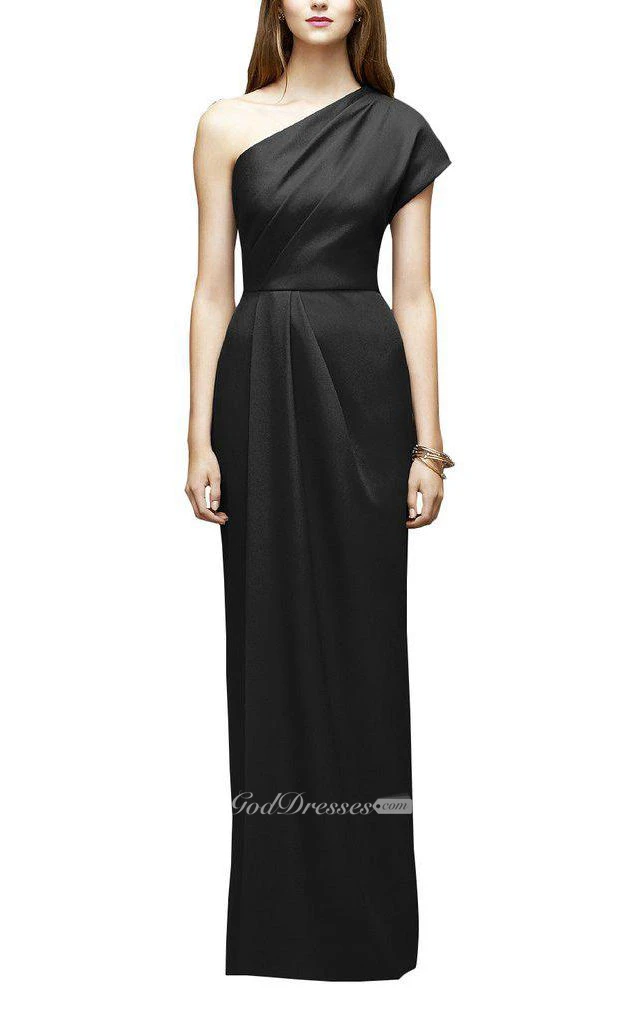 One Shoulder Satin Sheath Bridesmaid Dress with Pleats