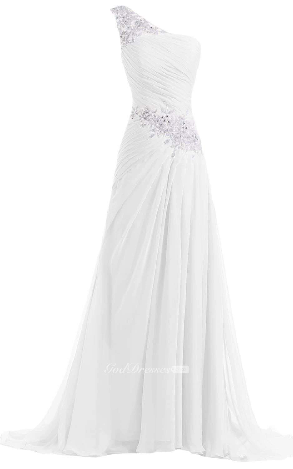 I just received my dress and love it! This dress is absolutely beautiful! The one-shoulder design is stunning! A little larger but that's ok. It's easy to be tailored. I am even more pleased with the fast and convenient delivery.