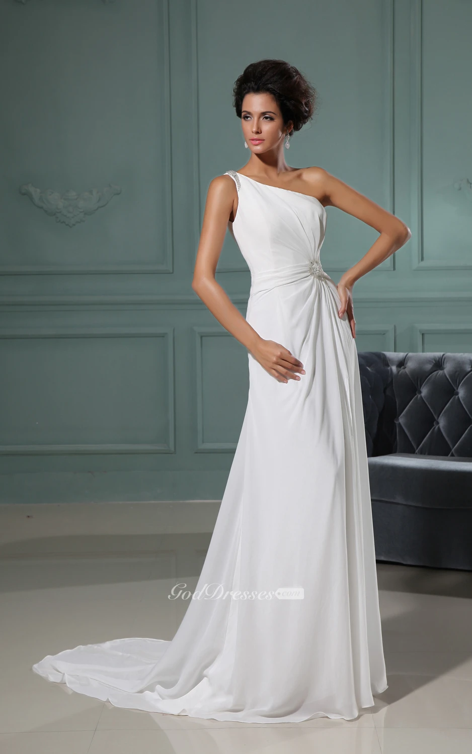 One-Shoulder Sheath Chiffon Dress With Brush Train
