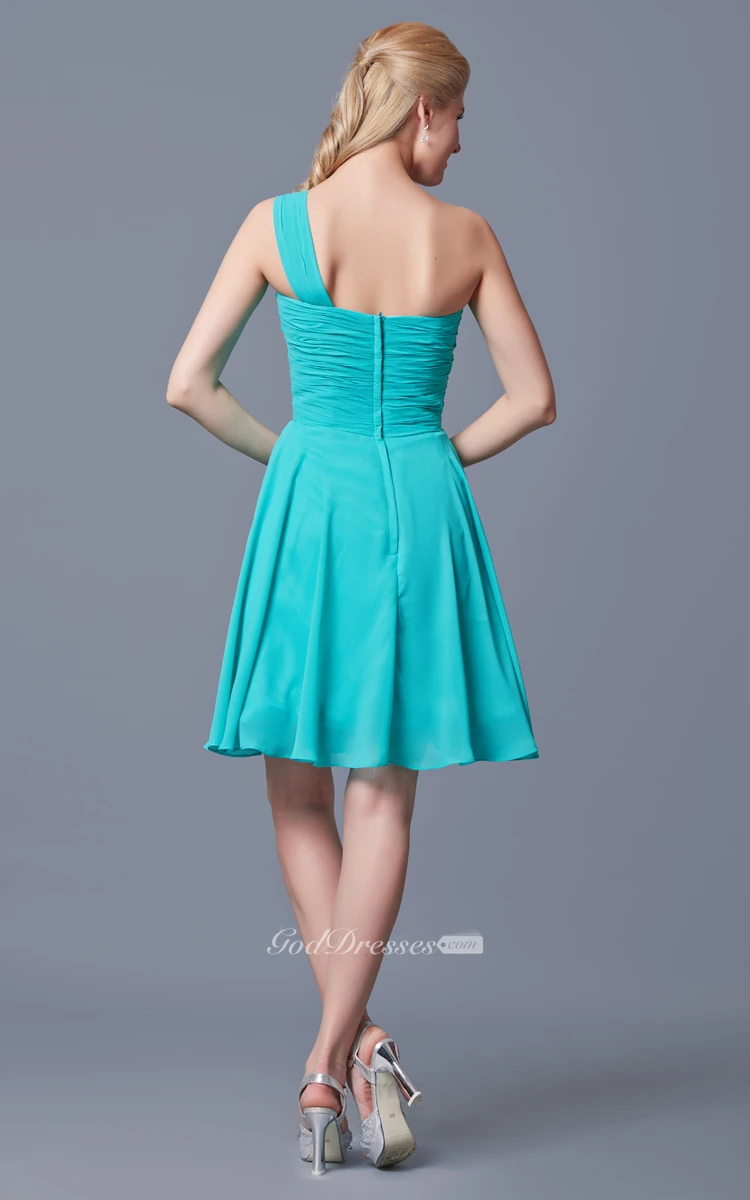 One Shoulder Short A-line Chiffon Dress With Complicated Bodice