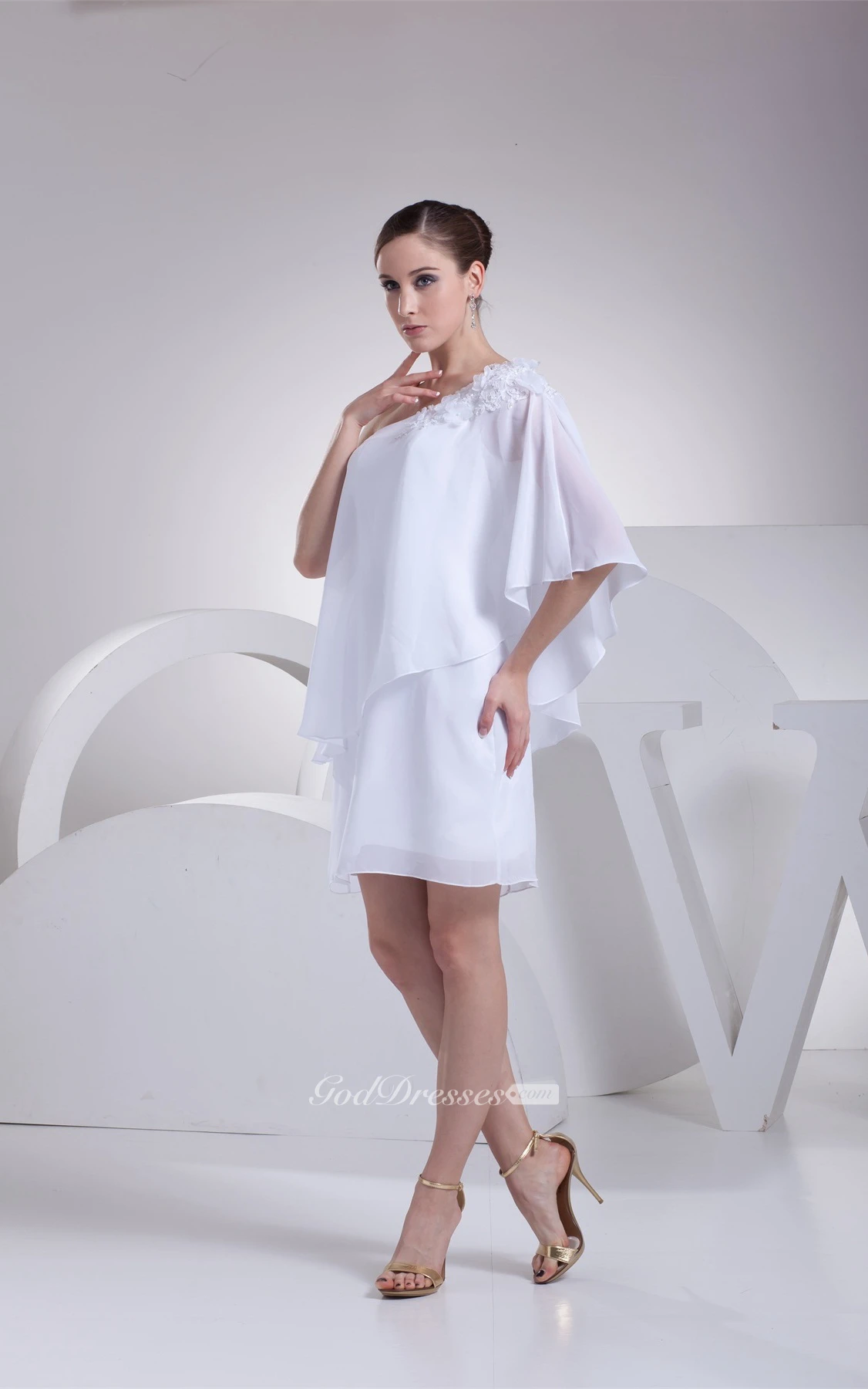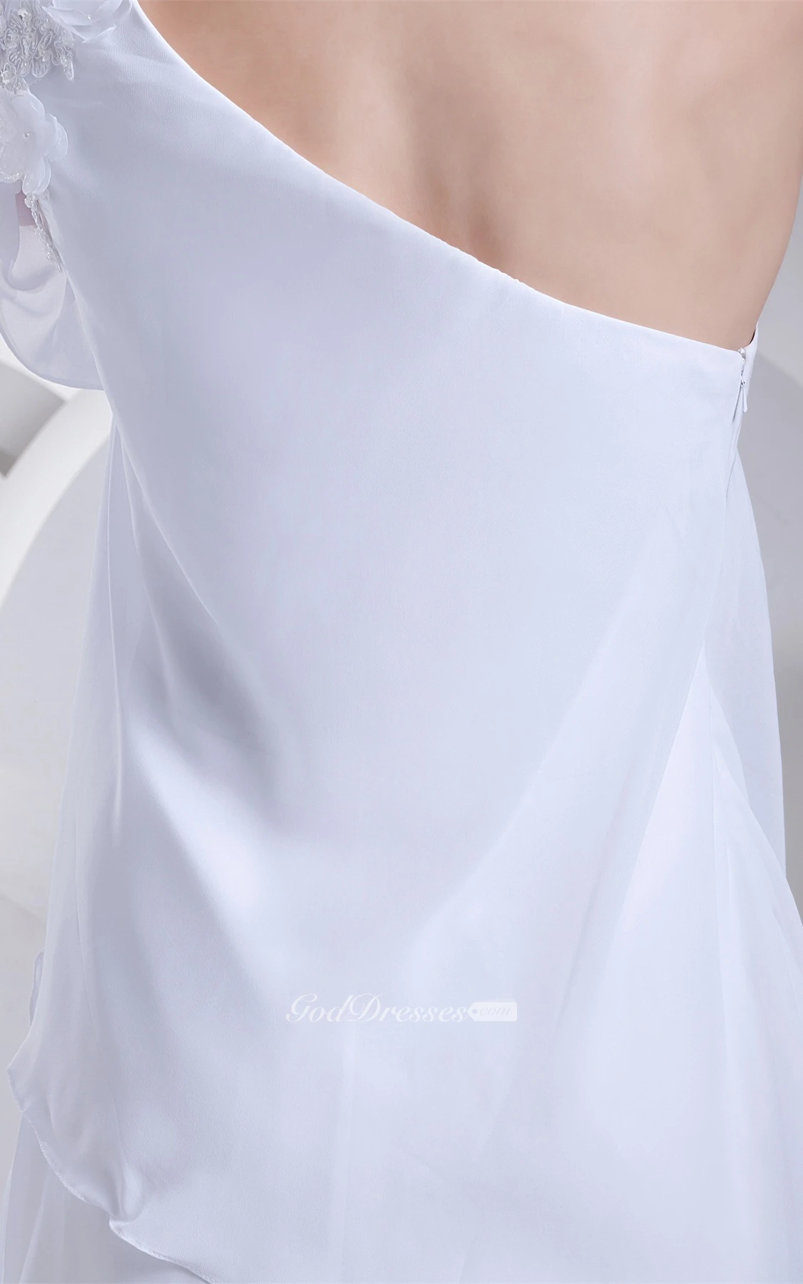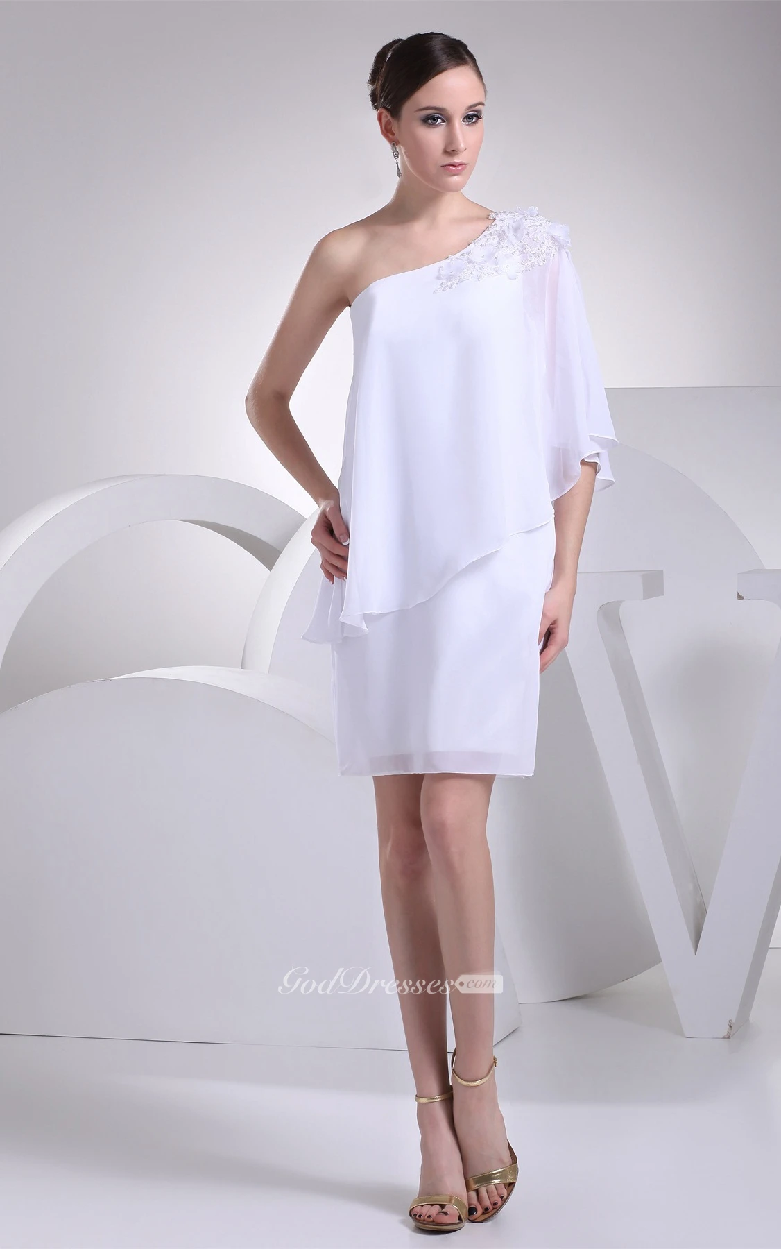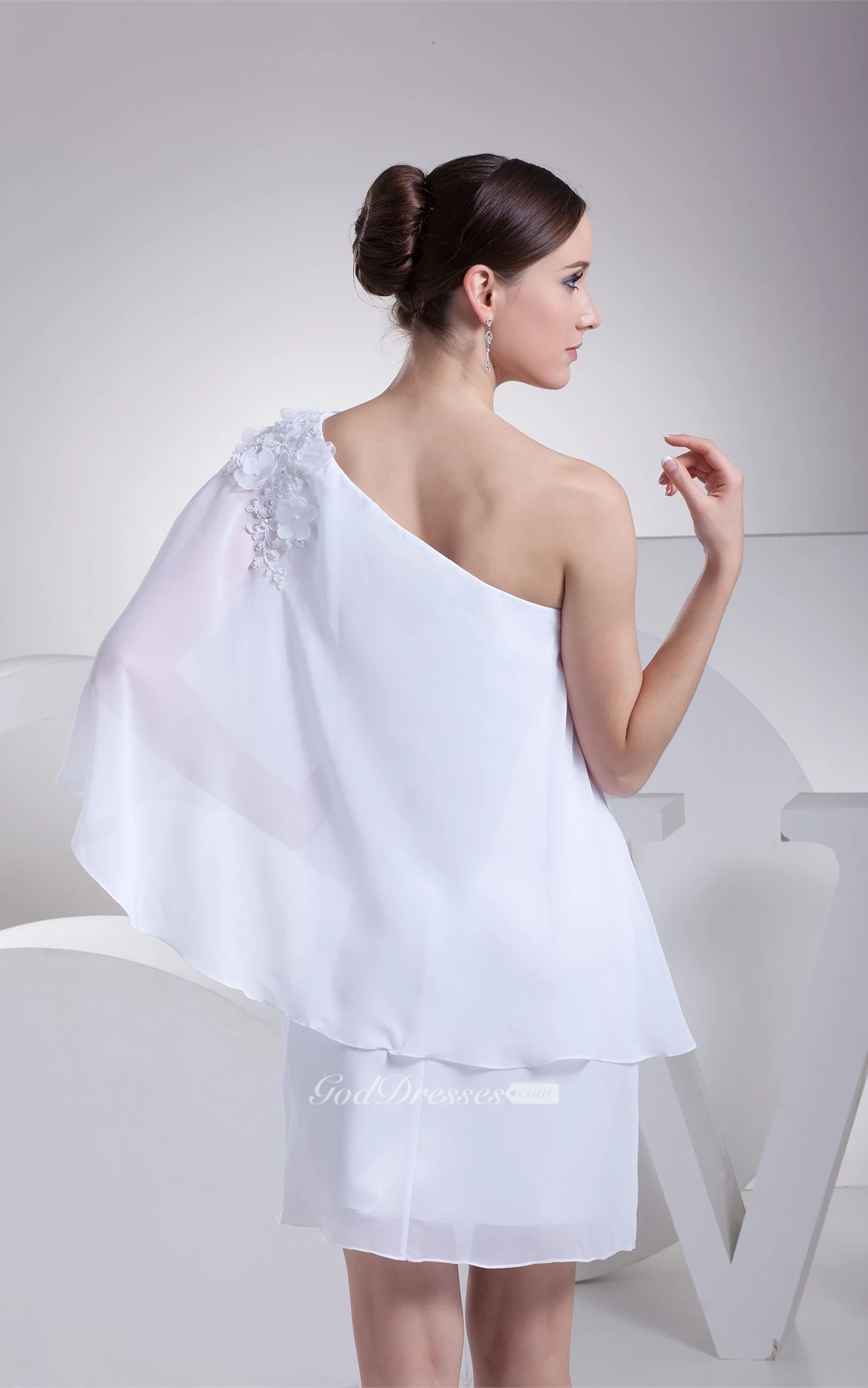One-Shoulder Short Chiffon Beading and Dress With Flower