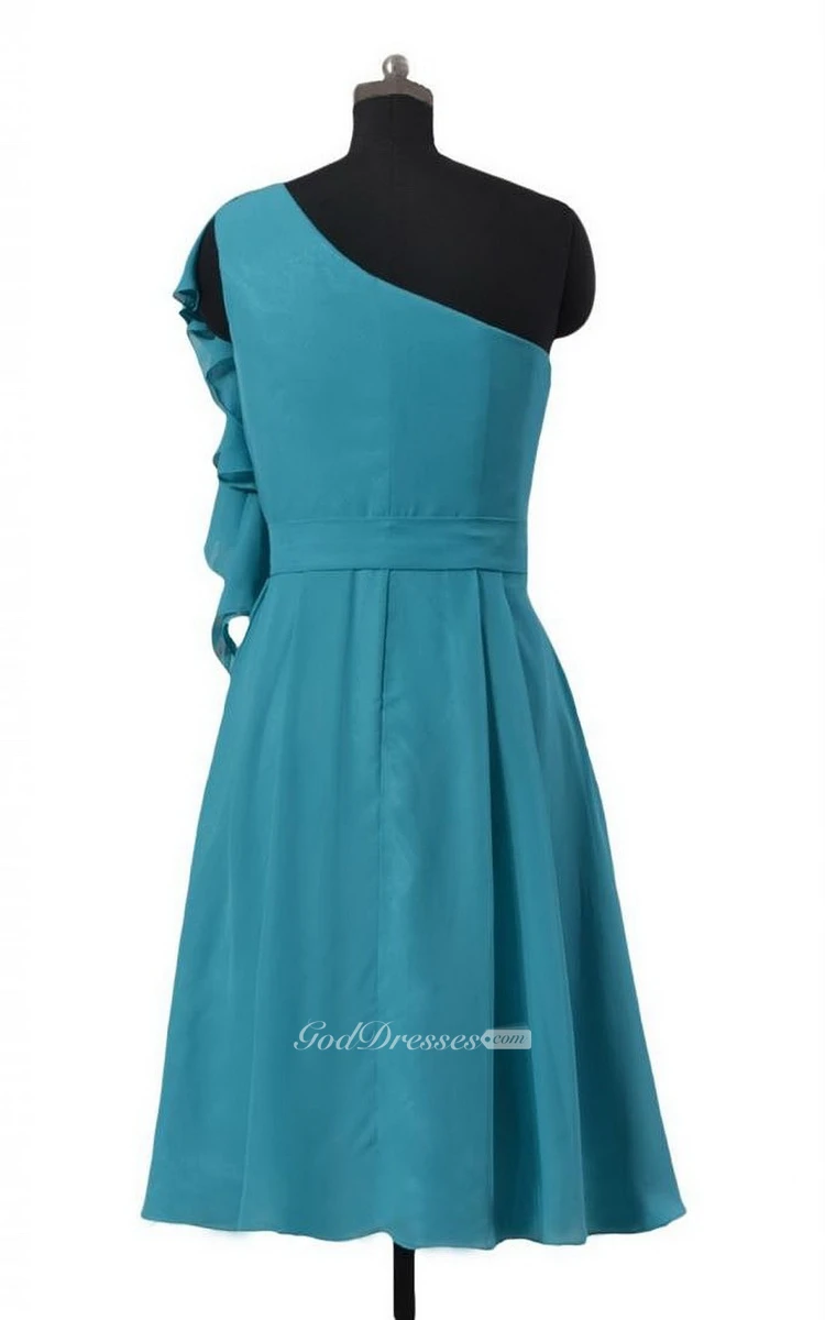 One-shoulder Short Mini Dress With Pleats