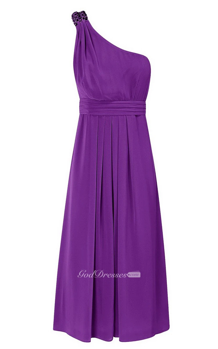 One-shoulder Short Ruffled Chiffon Dress With Beading