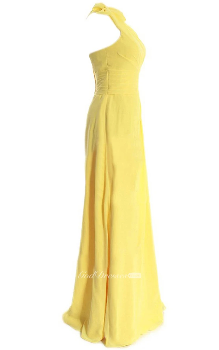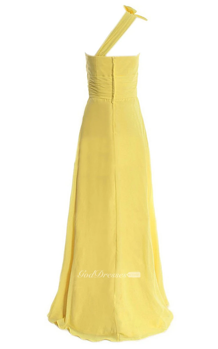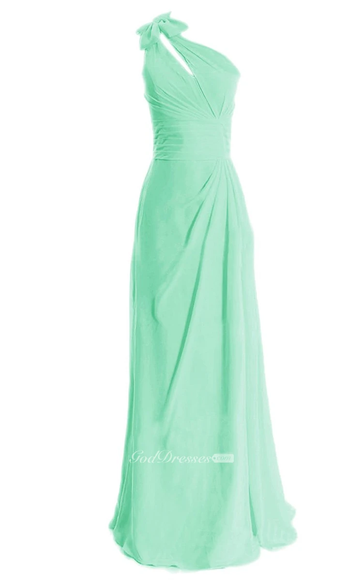 One-shoulder Side-drappping Chiffon A-line Gown With Bow
