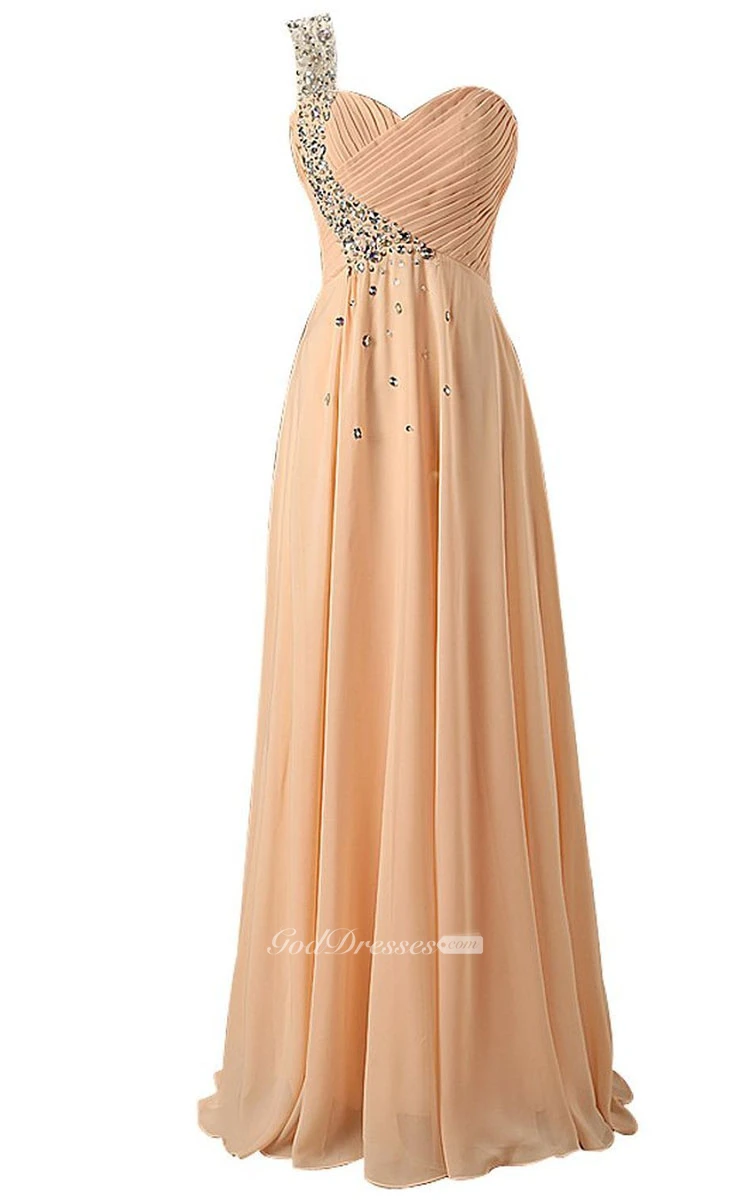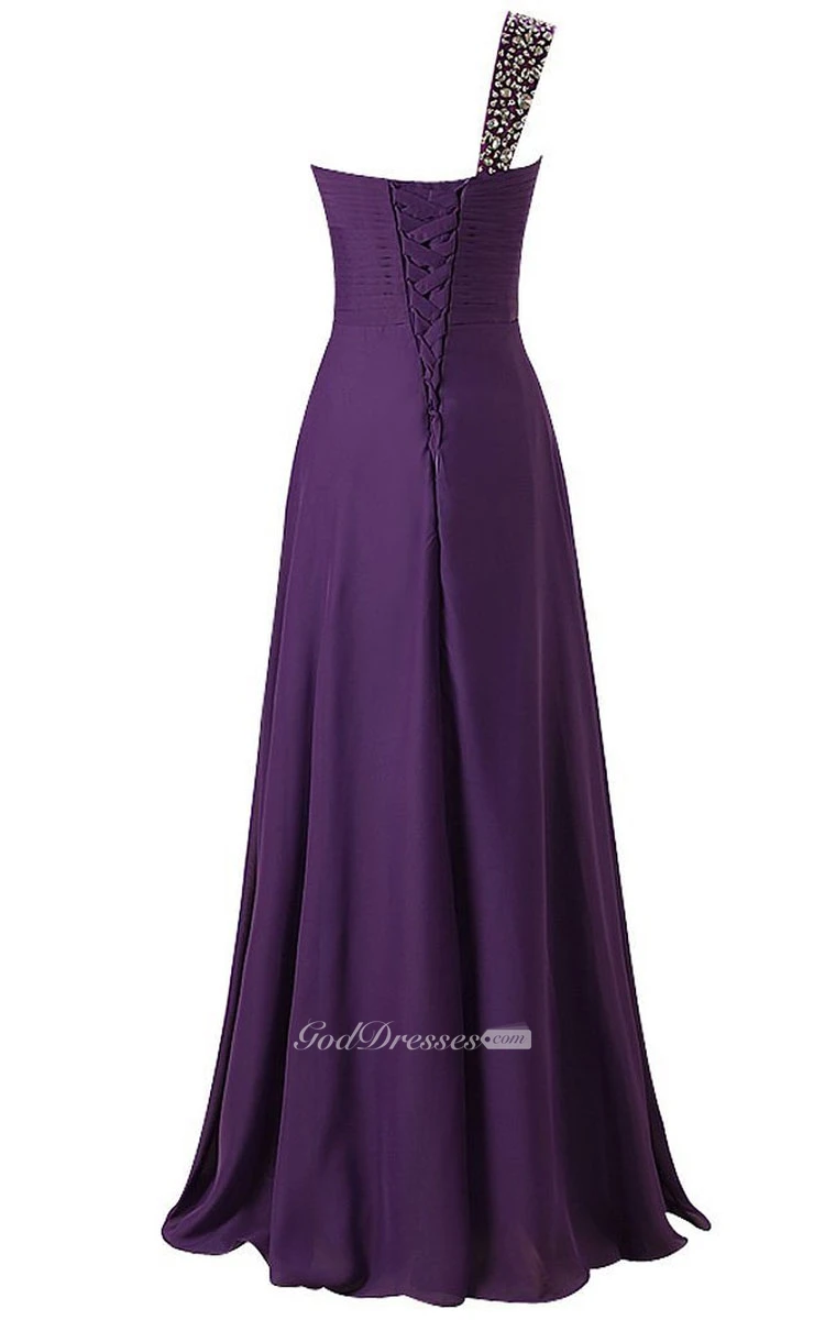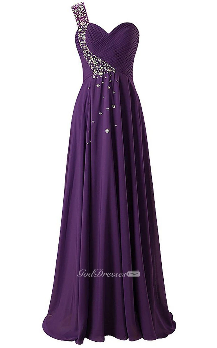 One-shoulder Sweetheart Chiffon Dress With Beadings