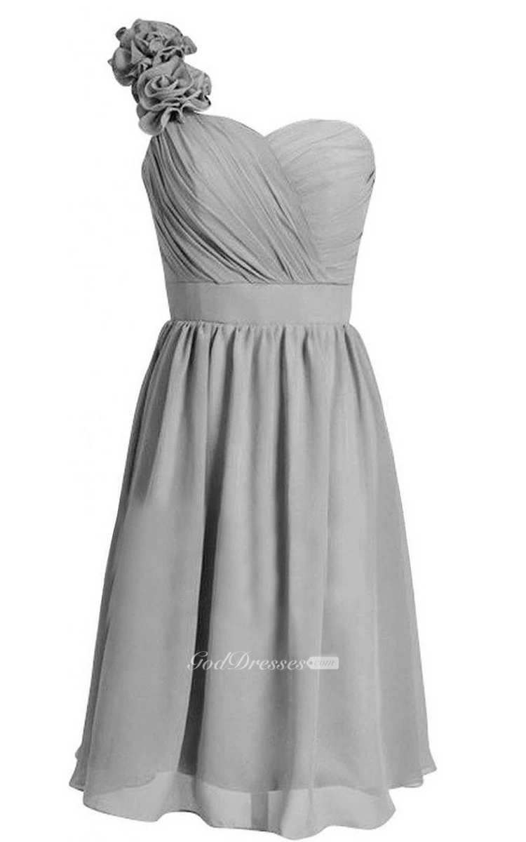 One-shoulder Sweetheart Chiffon Dress With Floral Strap