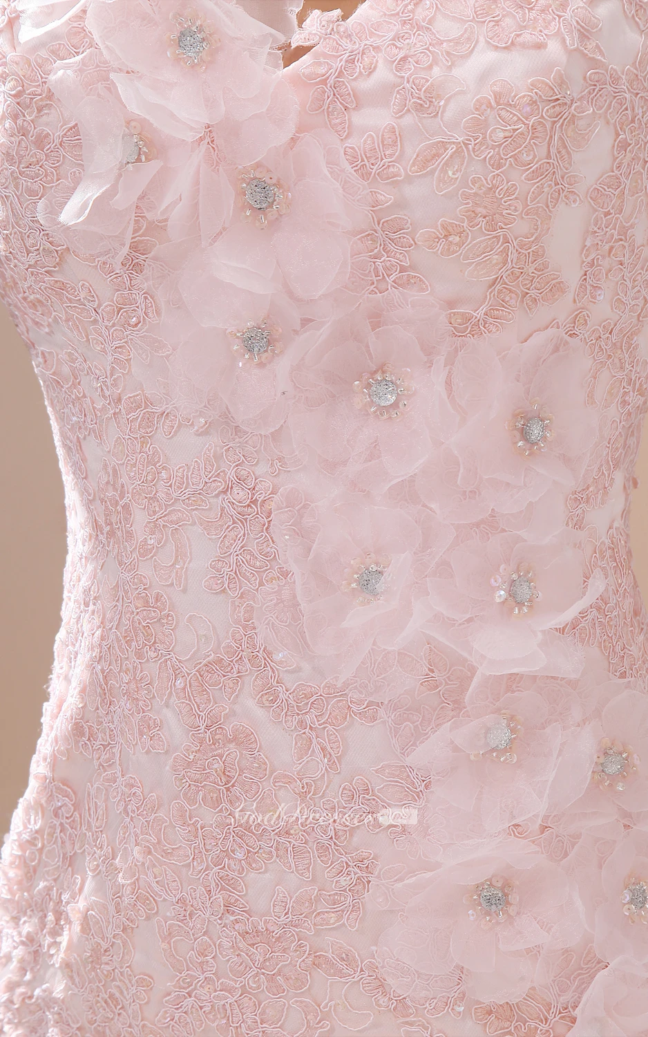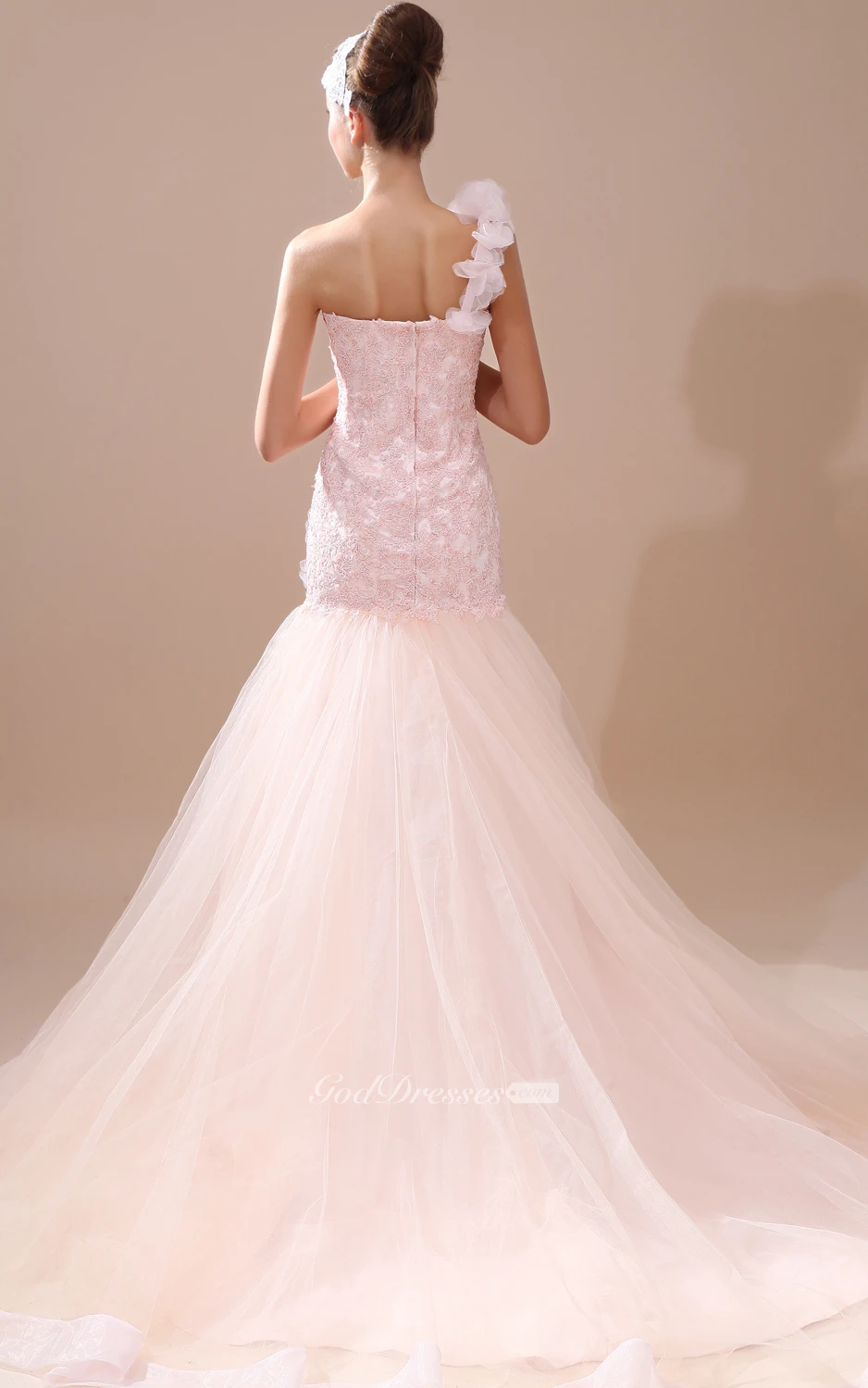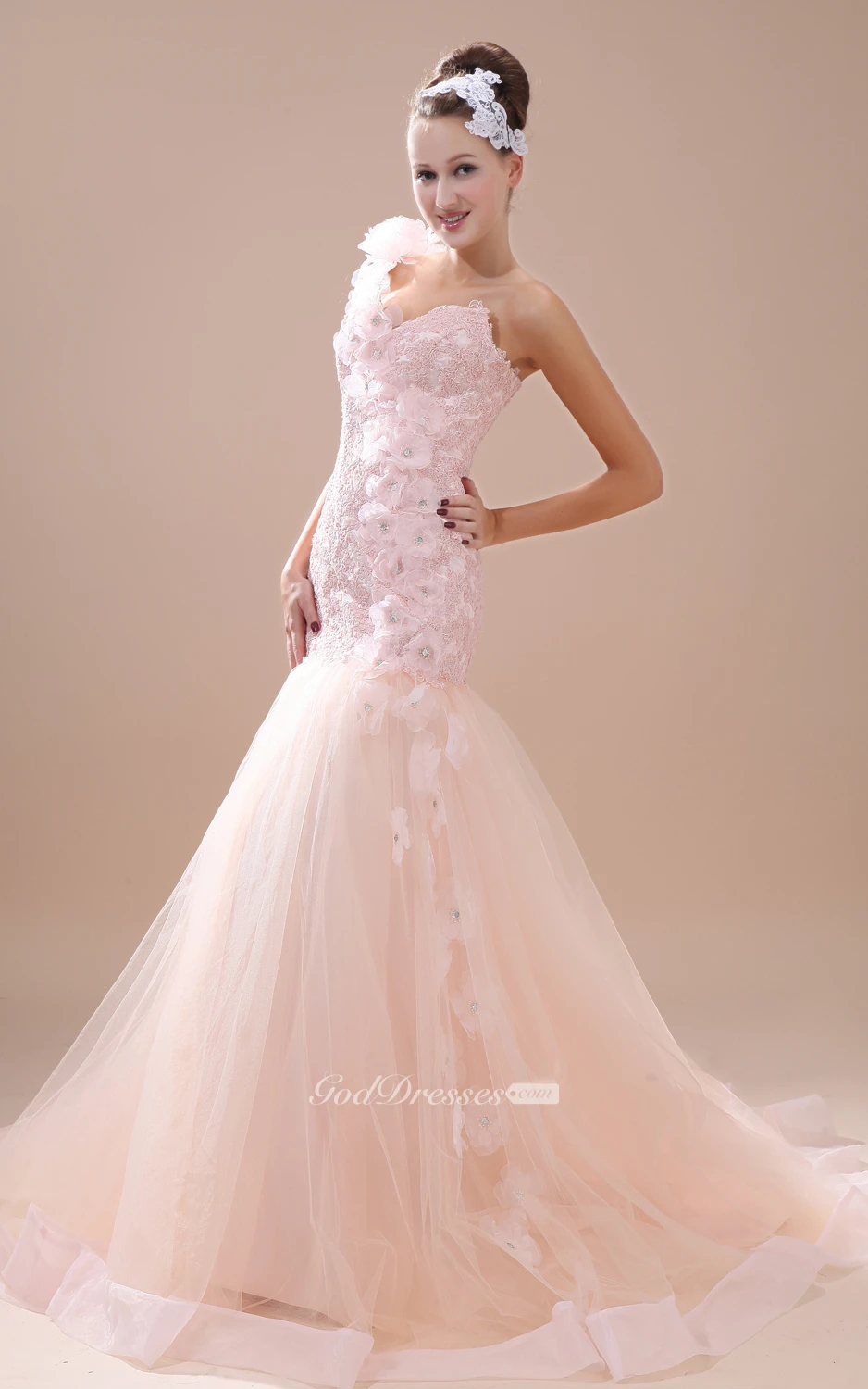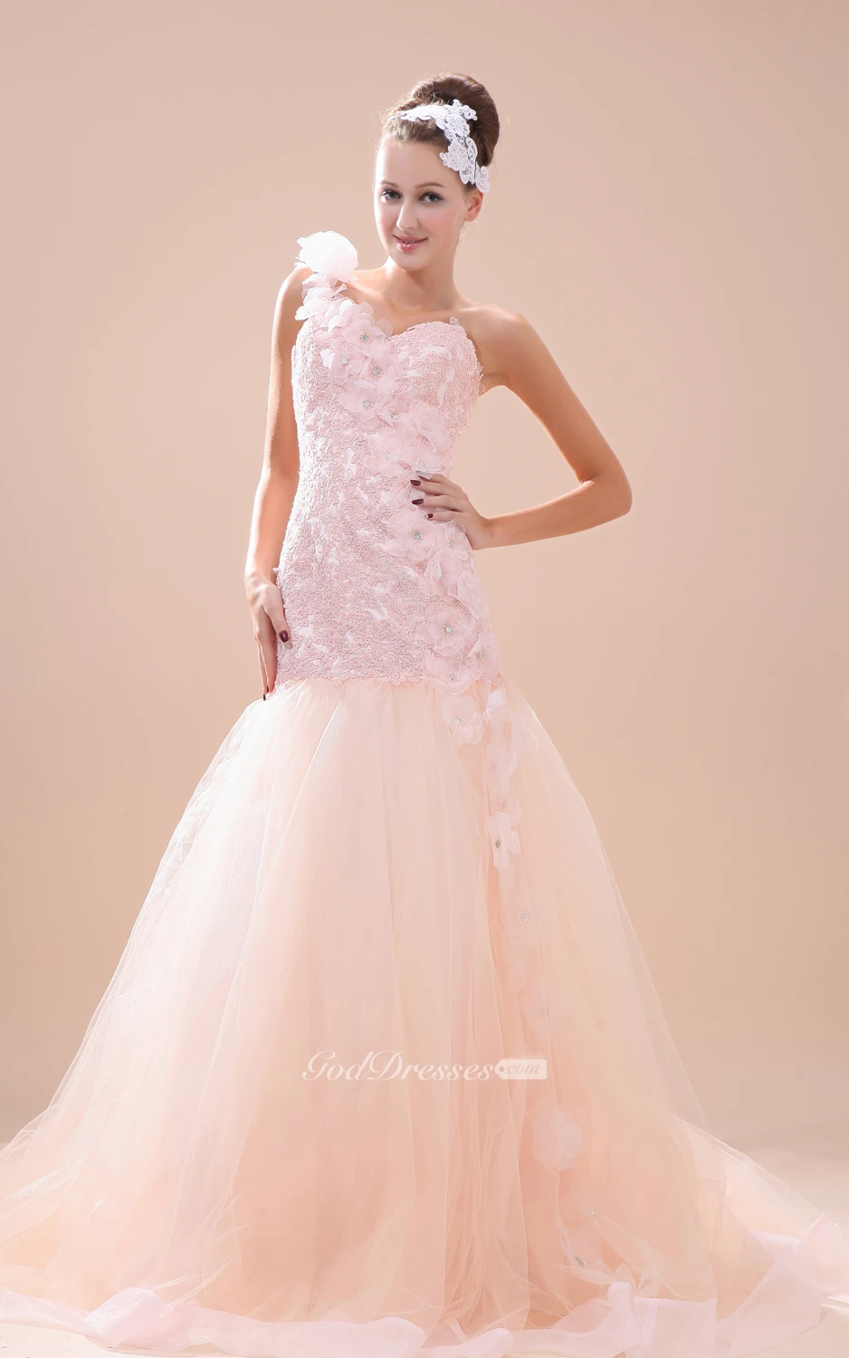 One-Shoulder Sweetheart Dress With Flowers and Appliques