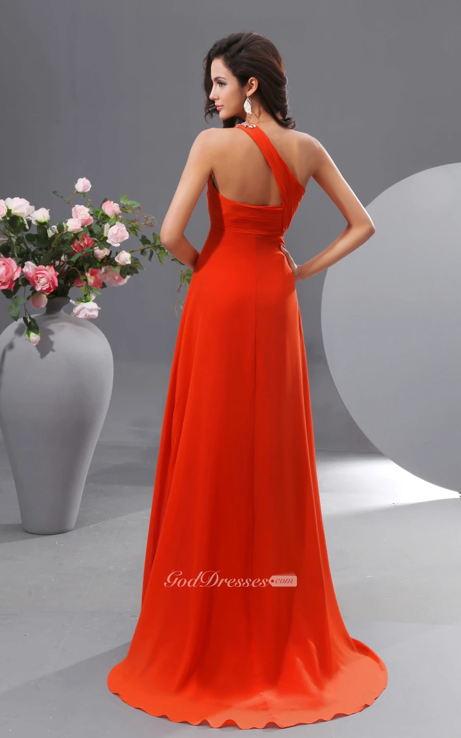 One-Strap Chiffon Floor-Length Dress With Brush Train