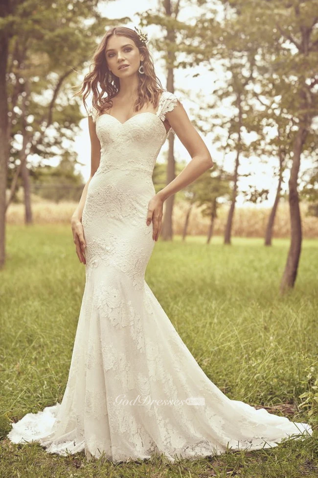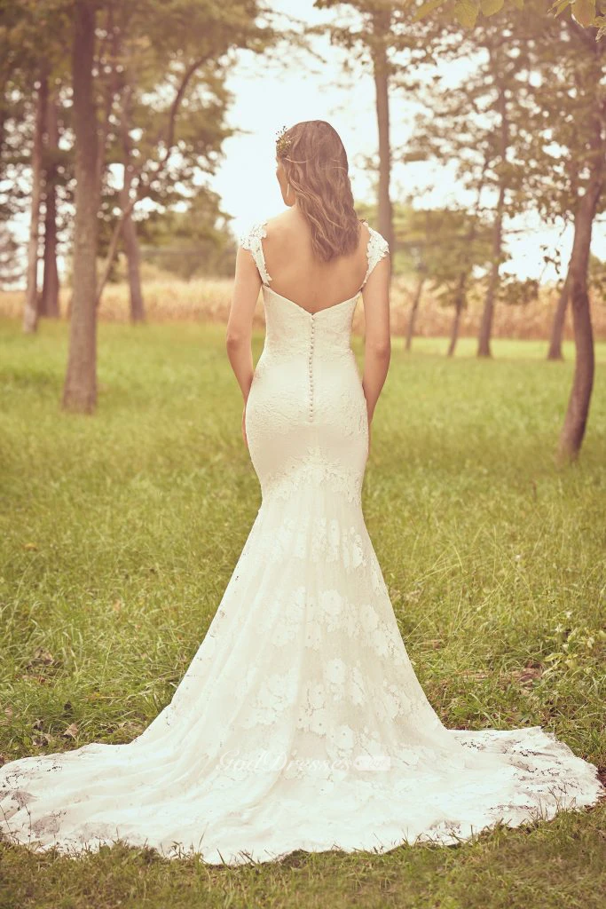 Open Back Cap Sleeve And Buttons Sweetheart Mermaid Lace Wedding Dress