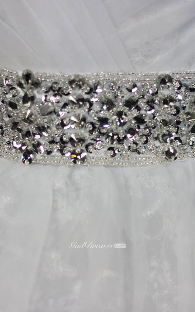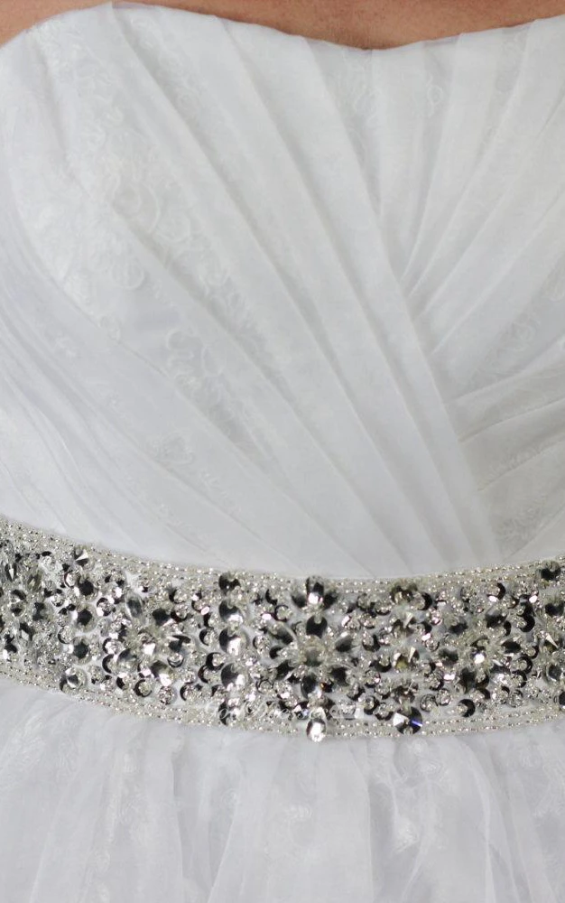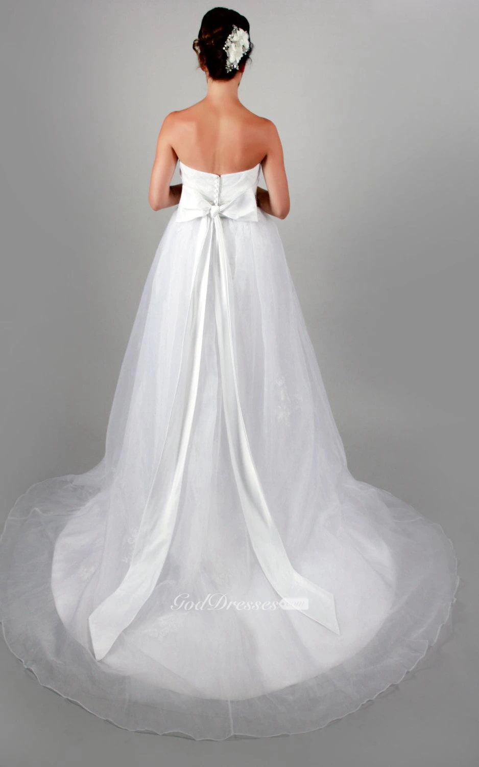 Organza A-Line Sweetheart Dress With Waist Rhinestones and Back Bow