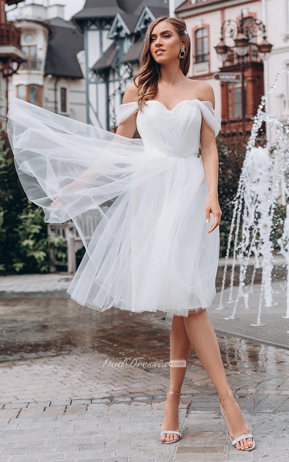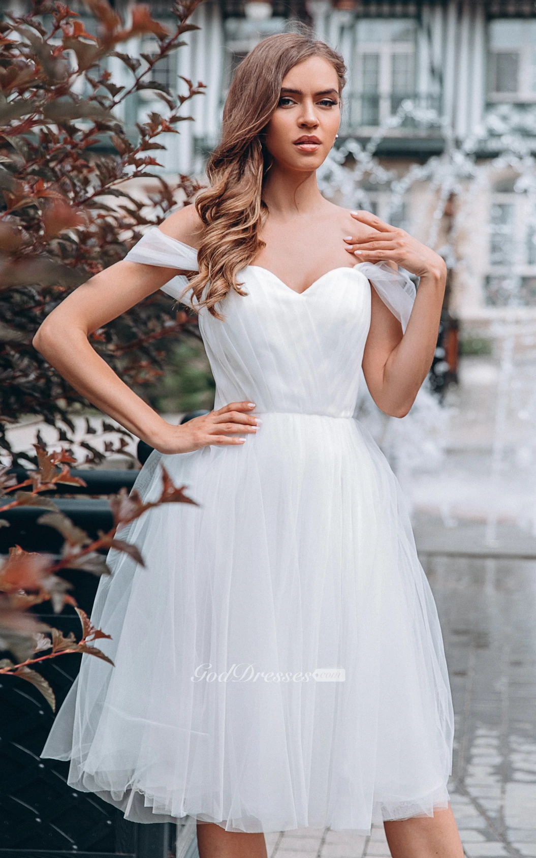 Organza Knee-length A Line Sleeveless Romantic Wedding Dress with Pleats
