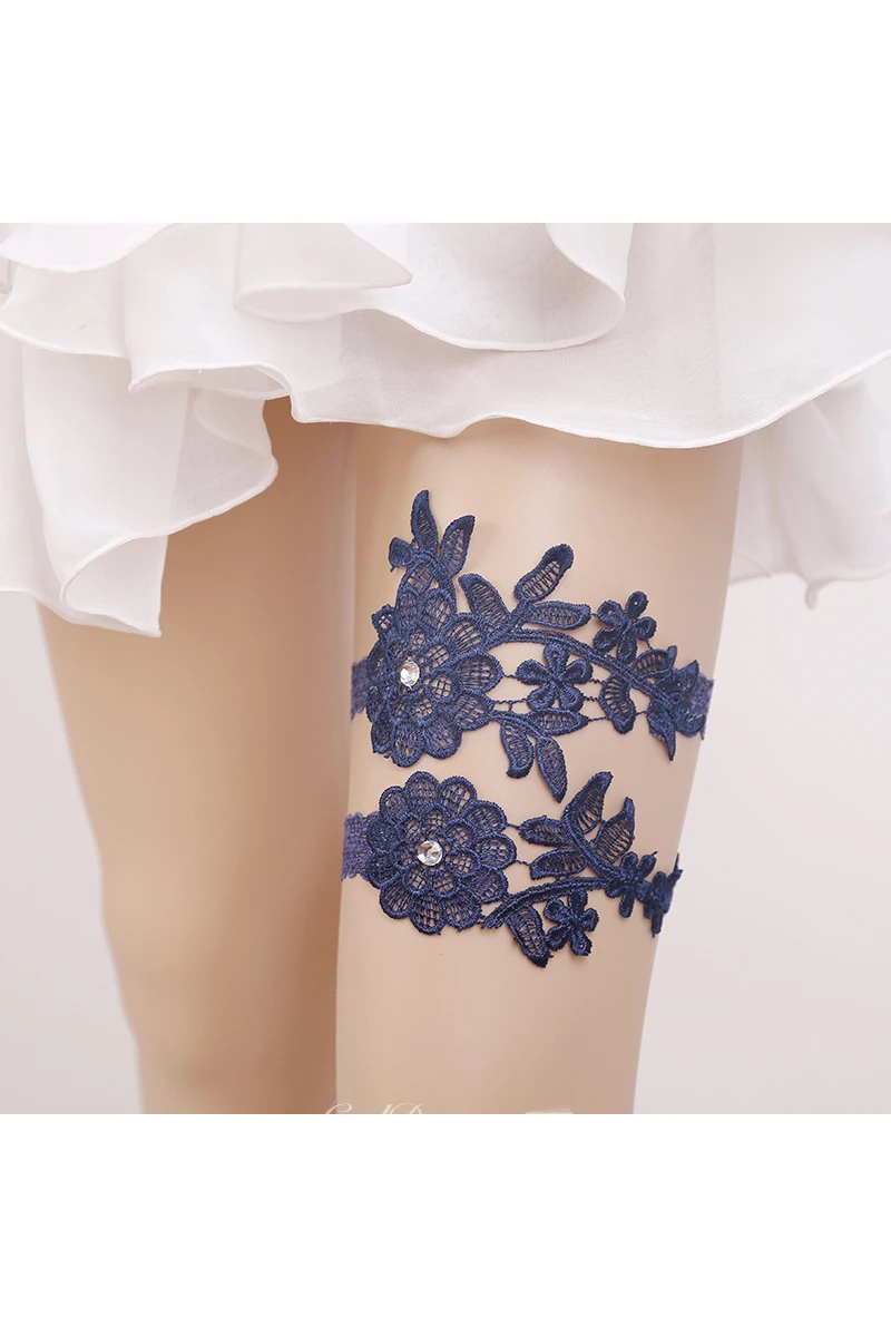Original Handmade Beaded Blue Lace Princess Style Elastic Garter Belt Within 16-23inch