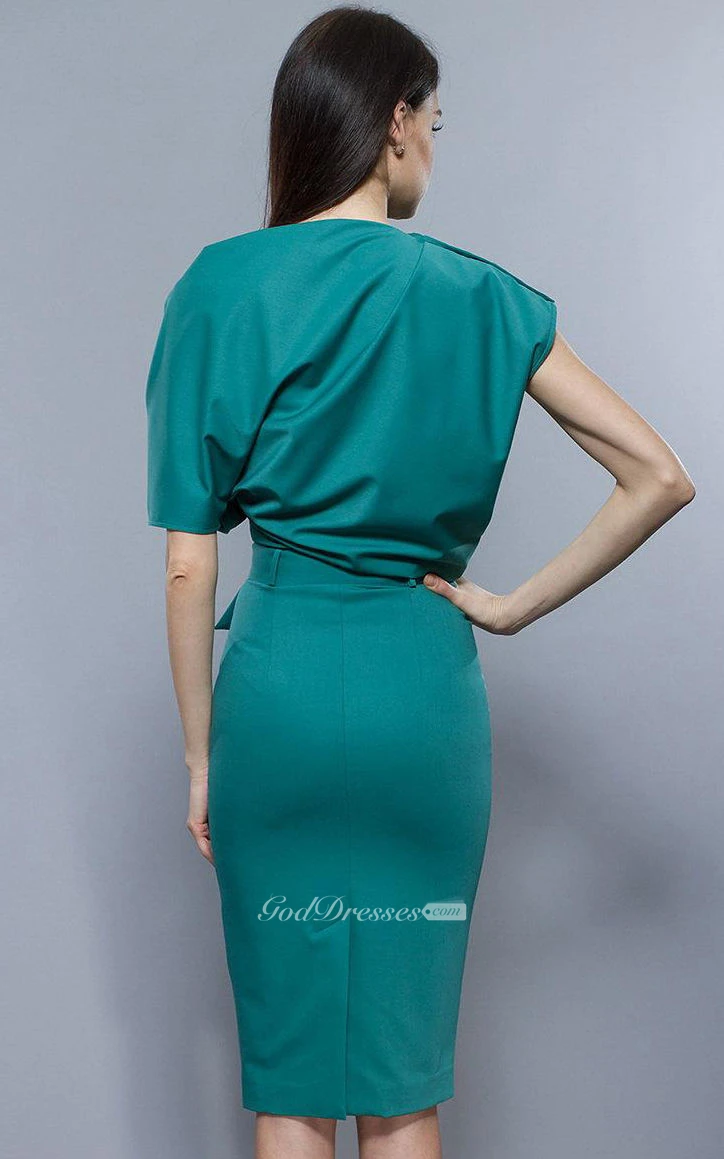 Oversize Top Sheath Jersey Knee Length Dress With Belt Turquoise