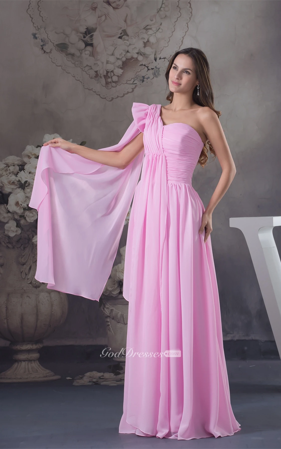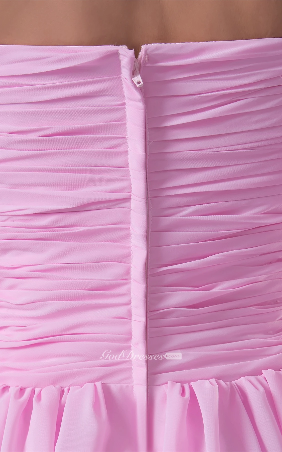 Pastel Chiffon Asymmetrical Pleats and Dress With Ruching