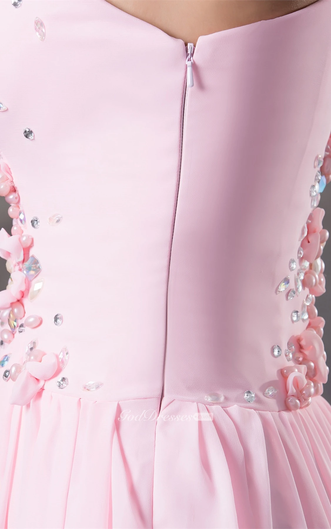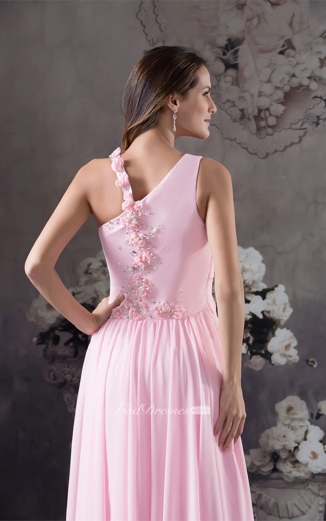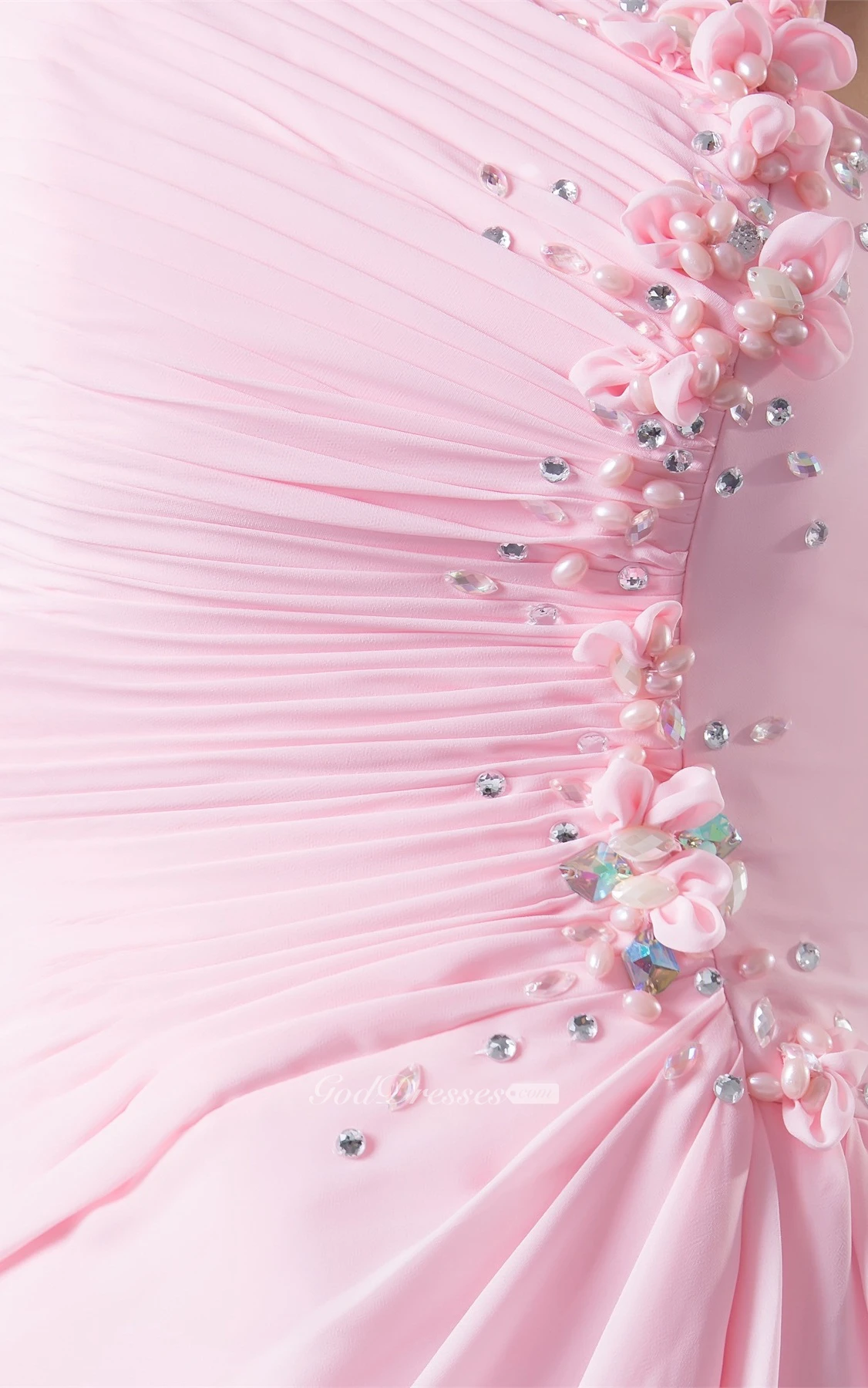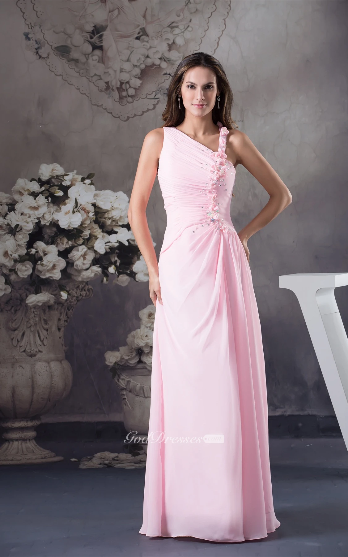 Pastel Ruched Floor-Length Chiffon Sleeveless Stress and Dress With Flower