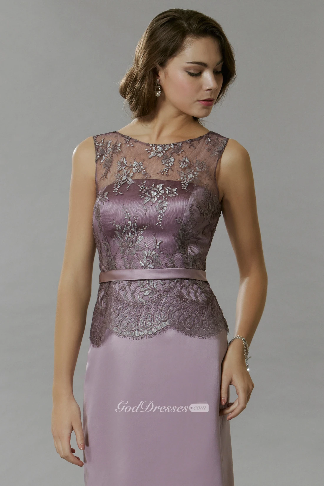 Pencil Mini Sleeveless Appliqued Scoop-Neck Satin Prom Dress