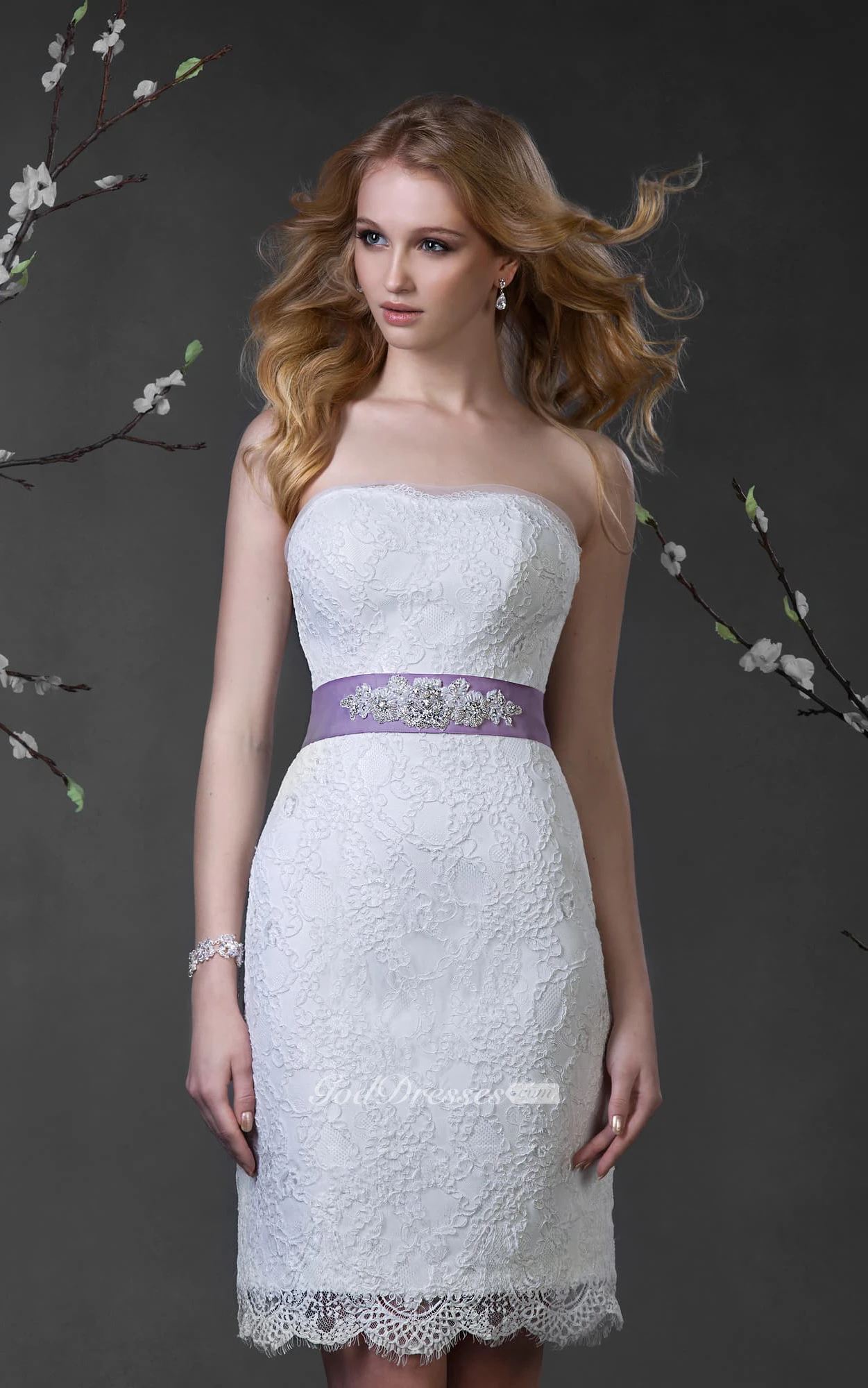 Pencil Short Strapless Sleeveless Lace-Up Lace Dress With Waist Jewellery