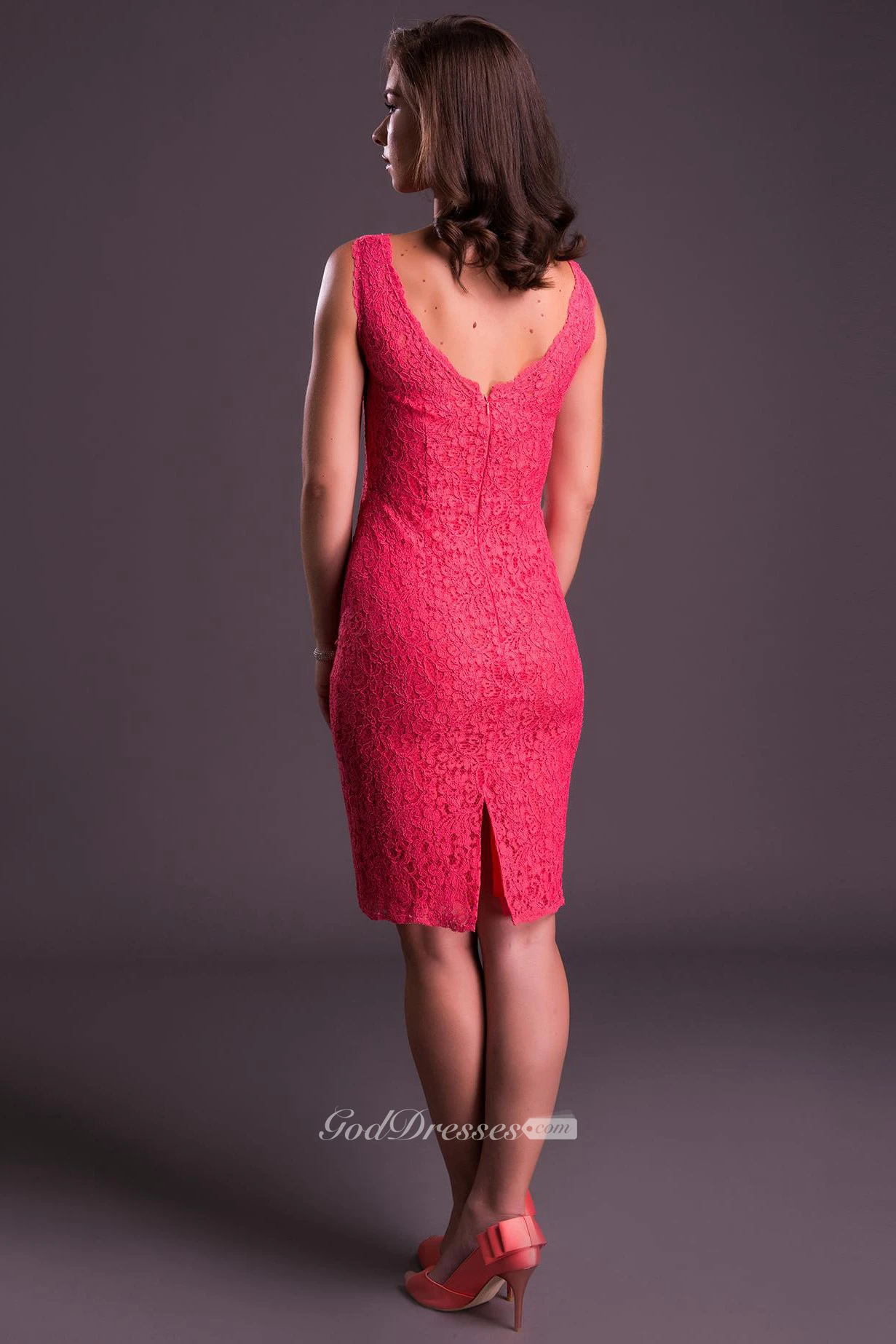 Pencil Sleeveless Jewel-Neck Split-Back Knee-Length Lace Prom Dress
