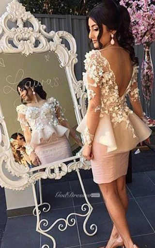 Peplum Skirt Long Sleeves Party Dresses with Appliques
