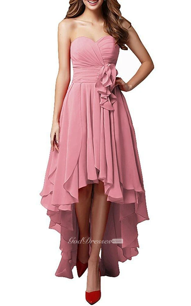 Pink Silver Sweetheart High Low Dress With Layered Skirt